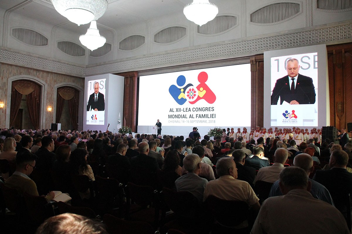 14 сентября 2018 года, утром, в Дворце Республике в Кишиневе, состоялось официальное открытие XII-го Международного Конгресса в защиту семейных ценностей, который был организован под эгидой Президента Республики Молдова Игоря Додона, и который будет проходить в столице в период 14 — 16 сентября с.г.