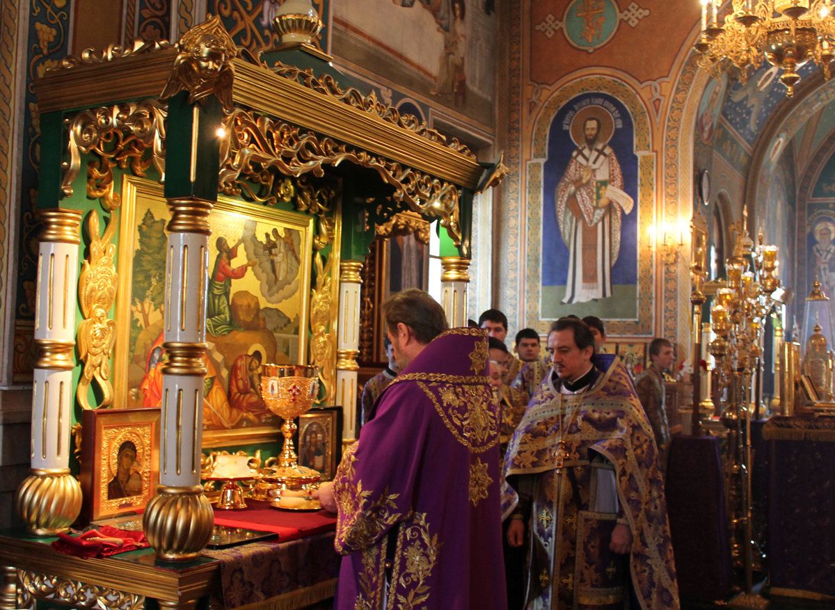 Проповедь перед Причастием произнес соборный клирик протоиерей Федор Тихон.