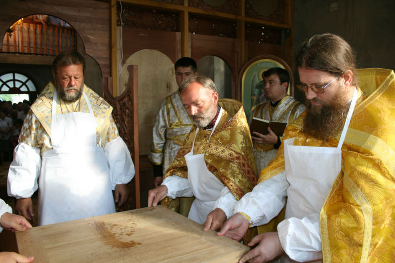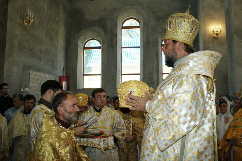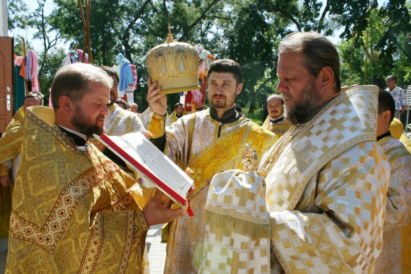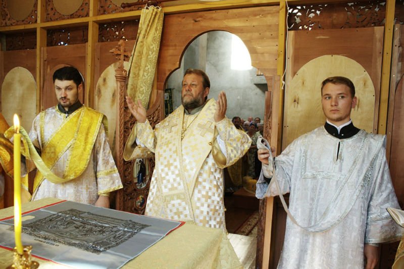 После литургии верующие во главе с Высокопреосвященным митрополитом Владимиром и собором священнослужителей совершили крестный ход вокруг церкви.