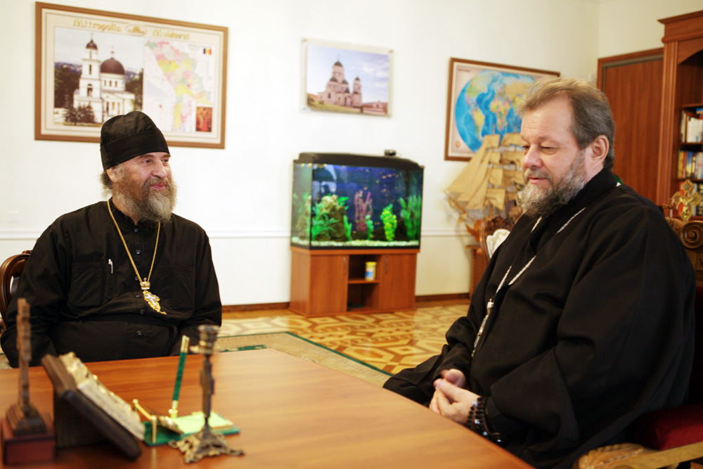 Митрополит Владимир принял в епархиальном управлении отца архимандрита Амвросия (Юрасова) из Ивановского монастыря (Россия), который посетил нашу республику. Архиерей поблагодарил известного духовника за благоволение поделиться своими мыслями и жизненным опытом с верующими нашей страны и за духовную поддержку в эти совсем непростые времена для православно-христианских сообществ.