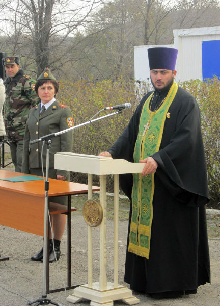 Обращаясь к курсантам, отец Федор напомнил, что их роль в обществе особенно трудная, поэтому все предстоящие им в течение долгого времени задачи неоходимо исполнять со страхом Божиим и абсолютной верой в справедливость и милосердие.