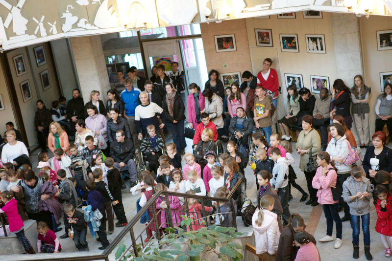 И поскольку нам нравится преуспевать во всем, 17 октября, когда отмечается Всемирный день борьбы за ликвидацию нищеты, мы воспользовались возможностью пригласить маленьких друзей из центра «Святого Дмитрия» на прекрасный спектакль, показанный актерами театра «Ликурич», где была организована и выставка. На спектакле присутствовали дети из социального центра «Святого Дмитрия» – младшее поколение; воспитанники интерната №5 столицы (учителями которого были заложены основы творческой деятельности мастерских центра); дети из Общественного центра для детей и молодежи с ограниченными физическими возможностями муниципия Кишинев; 40 детей из социально уязвимых семей села Дрэгушень (откуда родом преподаватель живописи социального центра Виктория Бэлэцел); 25 детей из бедных семей села Кошница Дубоссарского района – воспитанники социального центр «Дом Надежды» – партнера общественной ассоциацией «Filocalia» и дети из социального центра «Святого Филарета Милостивого» села Костешть Яловенского района, которые в последние годы активно участвовали в мероприятиях вместе со своими сверстниками из социального центра «Святого Дмитрия» Кишинева.