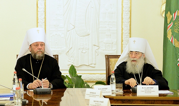 Вместе с другими членами президиума в работе форума принял участие и Высокопреосвященный митрополит Владимир.
