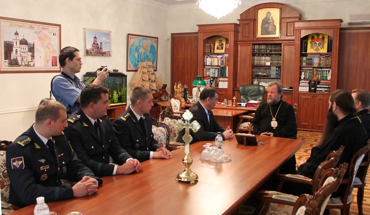 В свою очередь, г-н Валерий Троенко, от лица присутствующих сердечно поблагодарил Митрополита Владимира за теплый прием и высокую оценку их профессиональной деятельности, заверив Его Высокопреосвященство, что установившиеся добрые взаимоотношения между министерством Обороны и Кишиневско-Молдавской Митрополией будут и далее развиваться самым благоприятным образом.