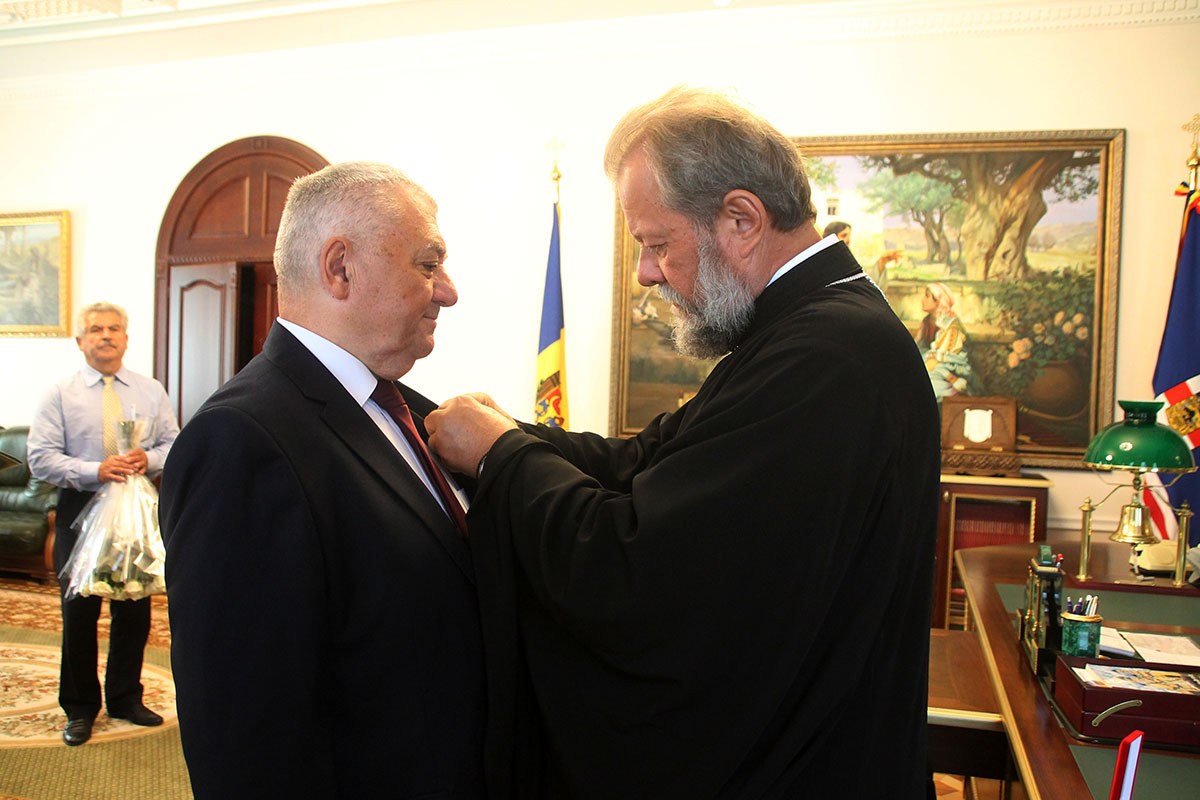 На основании поданного прошения-ходатайства митр. прот. Анатолия Стефанова, благочинного церквей Яловенского района, во внимание к успешному и плодотворному сотрудничеству между Яловенским благочинническим округом и Яловенской районной администрацией в деле восстановления и благоустройства храмов и обителей благочиния, а также по случаю провозглашения 2018 года — годом святого благоверного воеводы Стефана Великого, господаря Молдавского, глава Православной Церкви Молдовы удостоил присутствующих гостей высоких церковных наград: