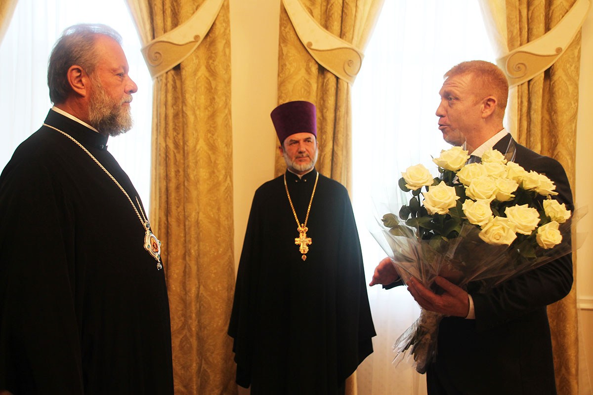 11 июля 2018 года, Высокопреосвященный Митрополит Владимир принял в своем рабочем кабинете группу благотворителей Яловенского района в сопровождении митр. прот. Анатолия Стефанова, благочинного церквей Яловенского района.