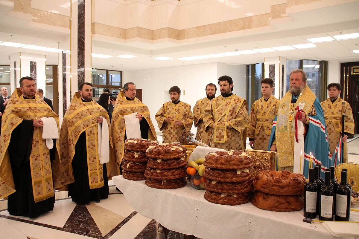 19 декабря 2018 года, во второй половине дня, Высокопреосвященный Митрополит Владимир совершил чин освящения здания Президентского дворца в Кишиневе, восстановленного после капитального ремонта.