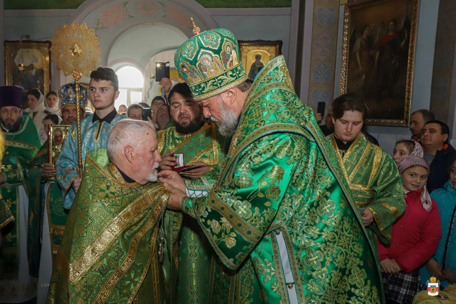 На малом входе, во внимание к плодотворным и усердным трудам во славу Святой Церкви, настоятель Успенского храма протоиерей Николай Желиховский был удостоен высокой богослужебной награды — права ношения митры. Также богослужебных наград были удостоены отдельные священнослужители Каушанского благочиния.