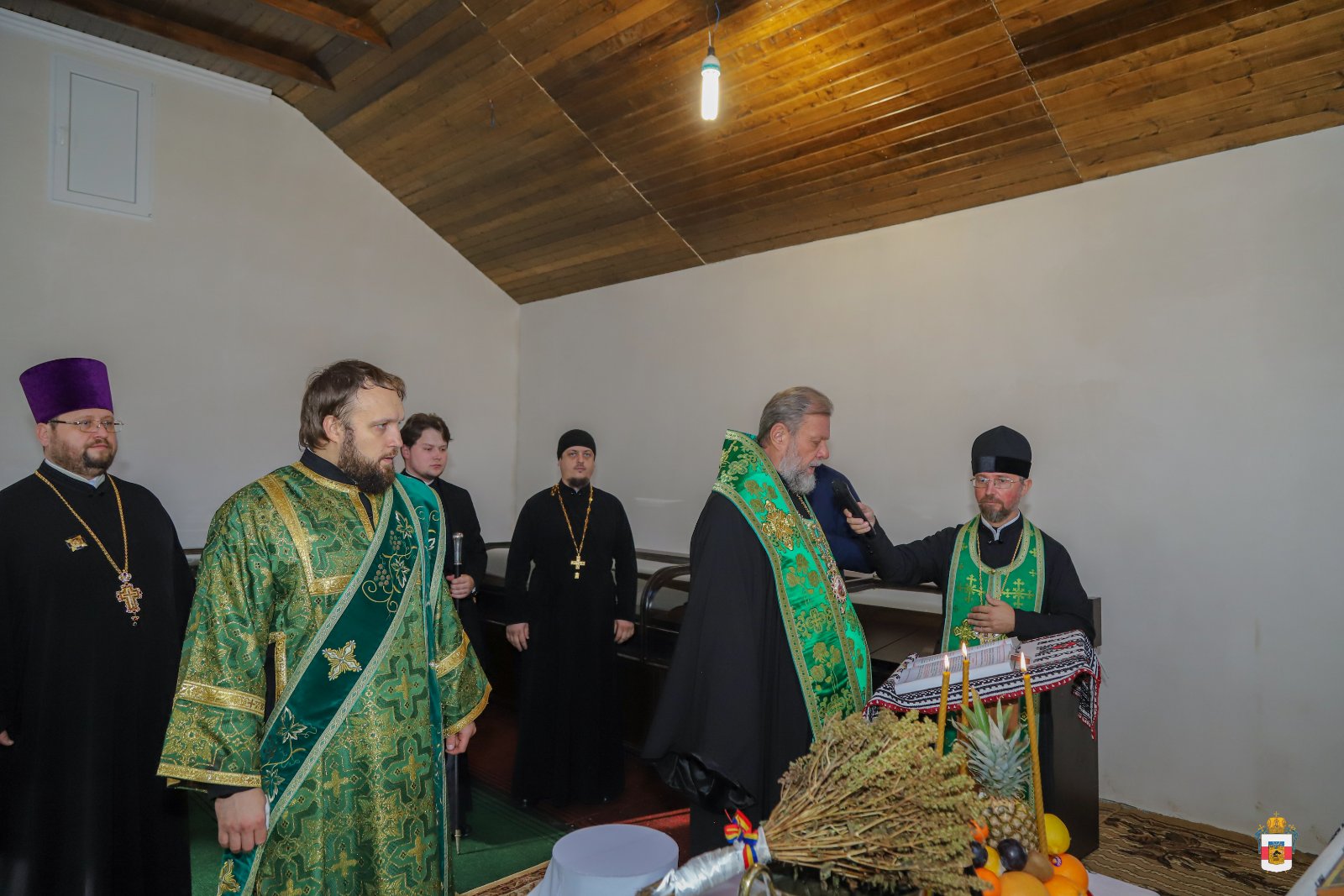 Его Высокопреосвященству сослужили благочинный церквей Каушанского района митрофорный протоиерей Василий Дамаскин, настоятель Успенского храма с. Сэлкуца Каушанского района протоиерей Николай Желиховский, духовенство благочиния и клирики храма.