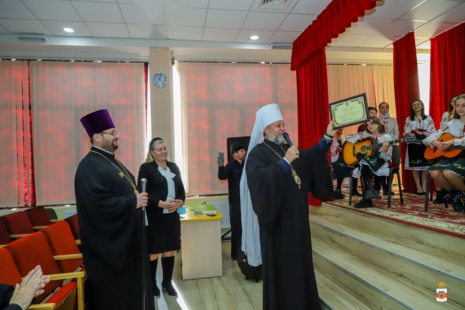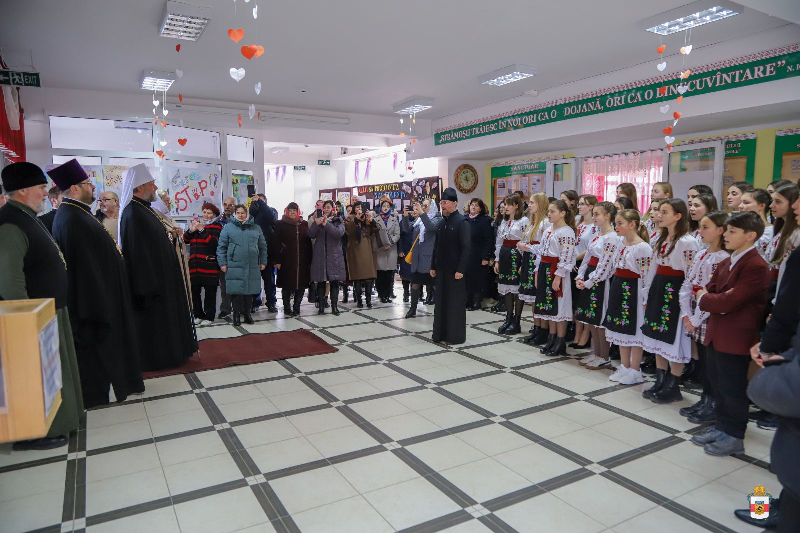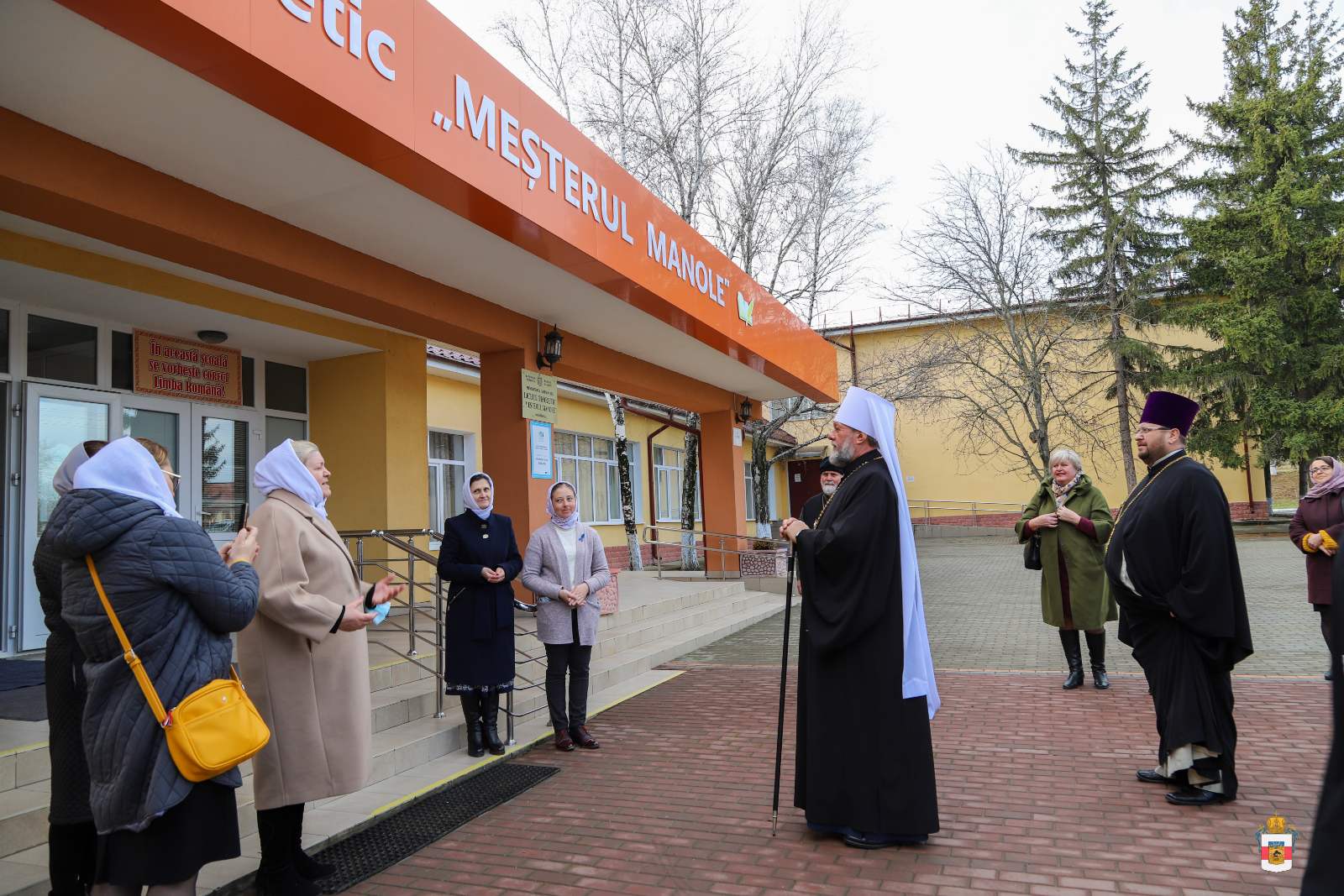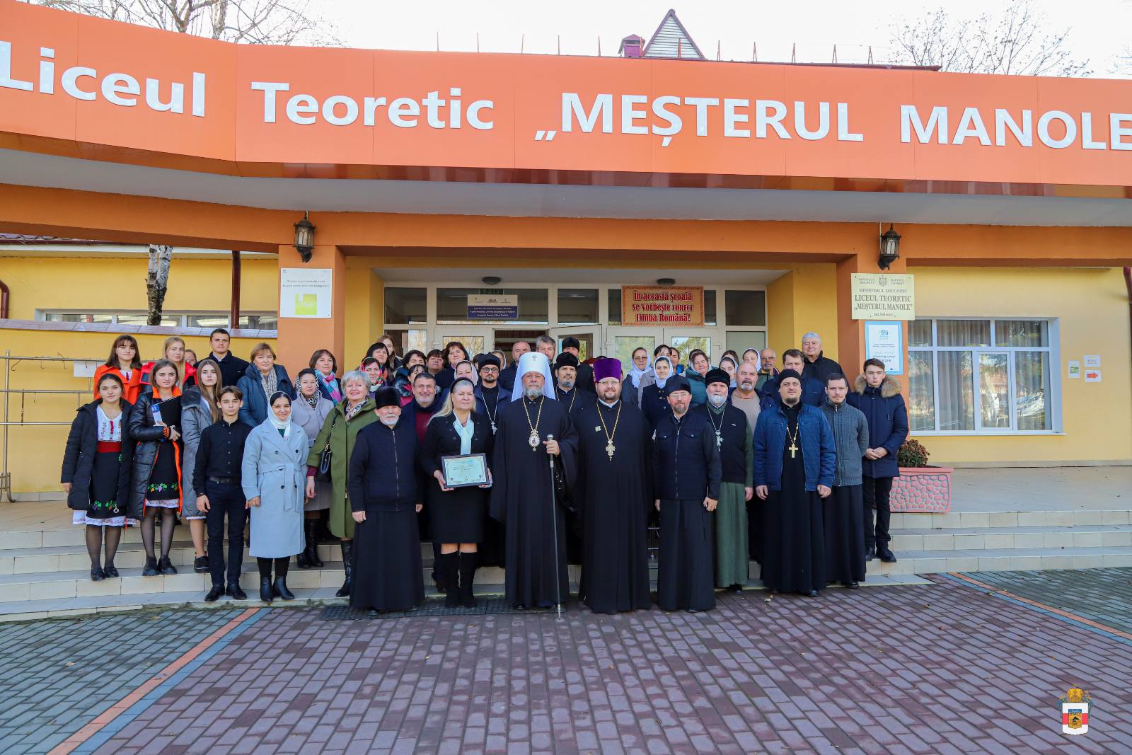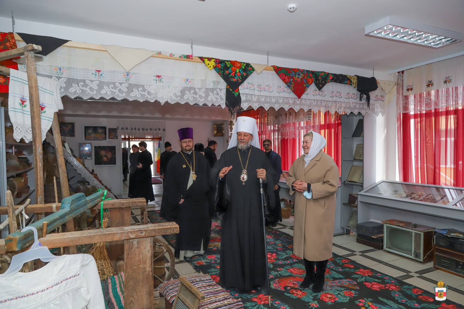 В продолжение визита, Высокопреосвященный Владыка Митрополит совершил чин освящения новообустроенного церковно-приходского музея. Затем архипастырь посетил местный Теоретический лицей «Мештерул Маноле», где Его Высокопреосвященство встретился с директором, учителями и учащимися этого учебного заведения.