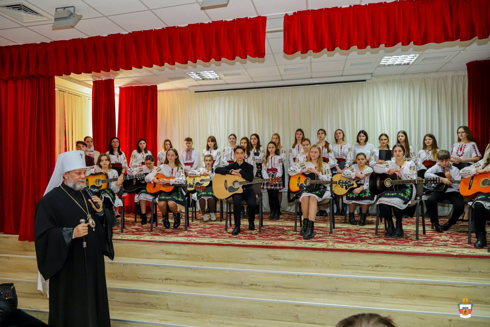 Хор лицеистов представил Его Высокопреосвященству небольшой музыкальный концерт. Архипастырь сердечно поблагодарил школьников за прекрасное выступление и вручил каждому из присутствующих молитвословы и книги религиозной тематики.