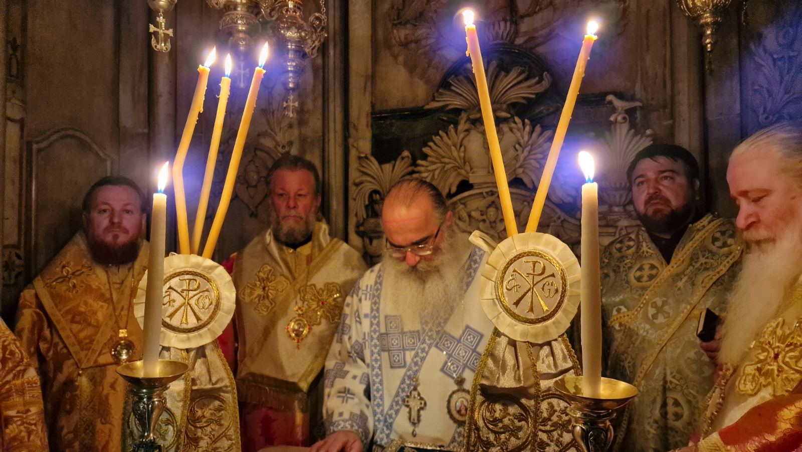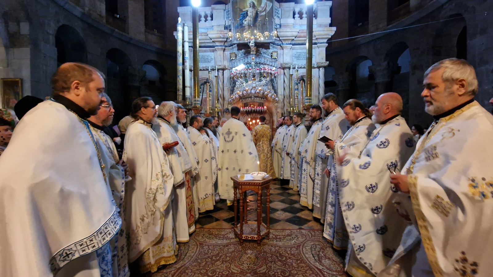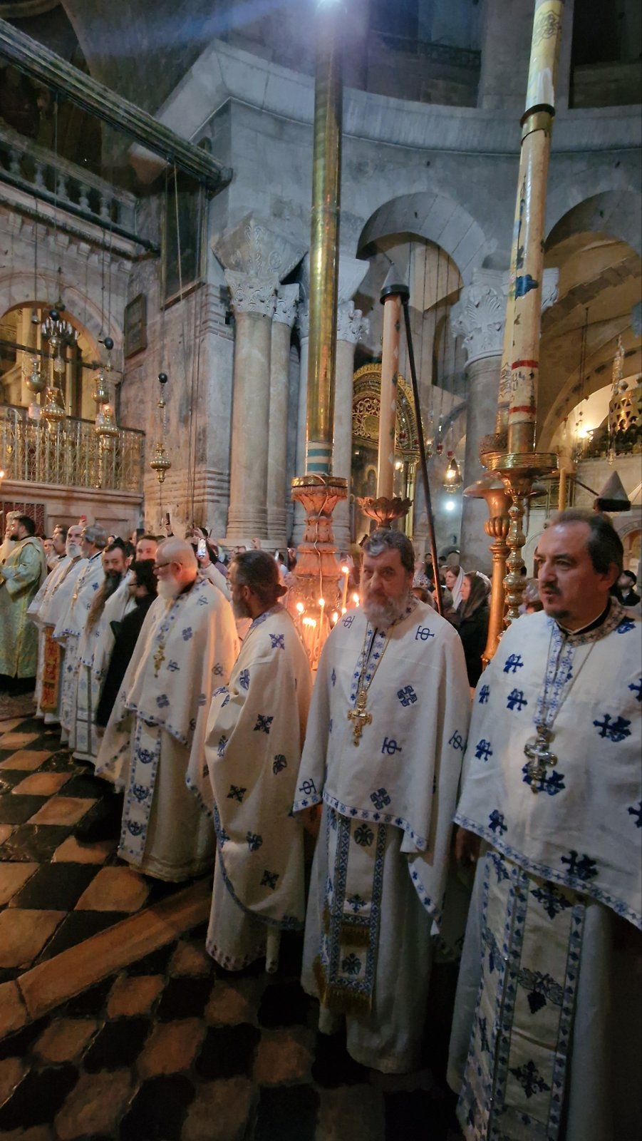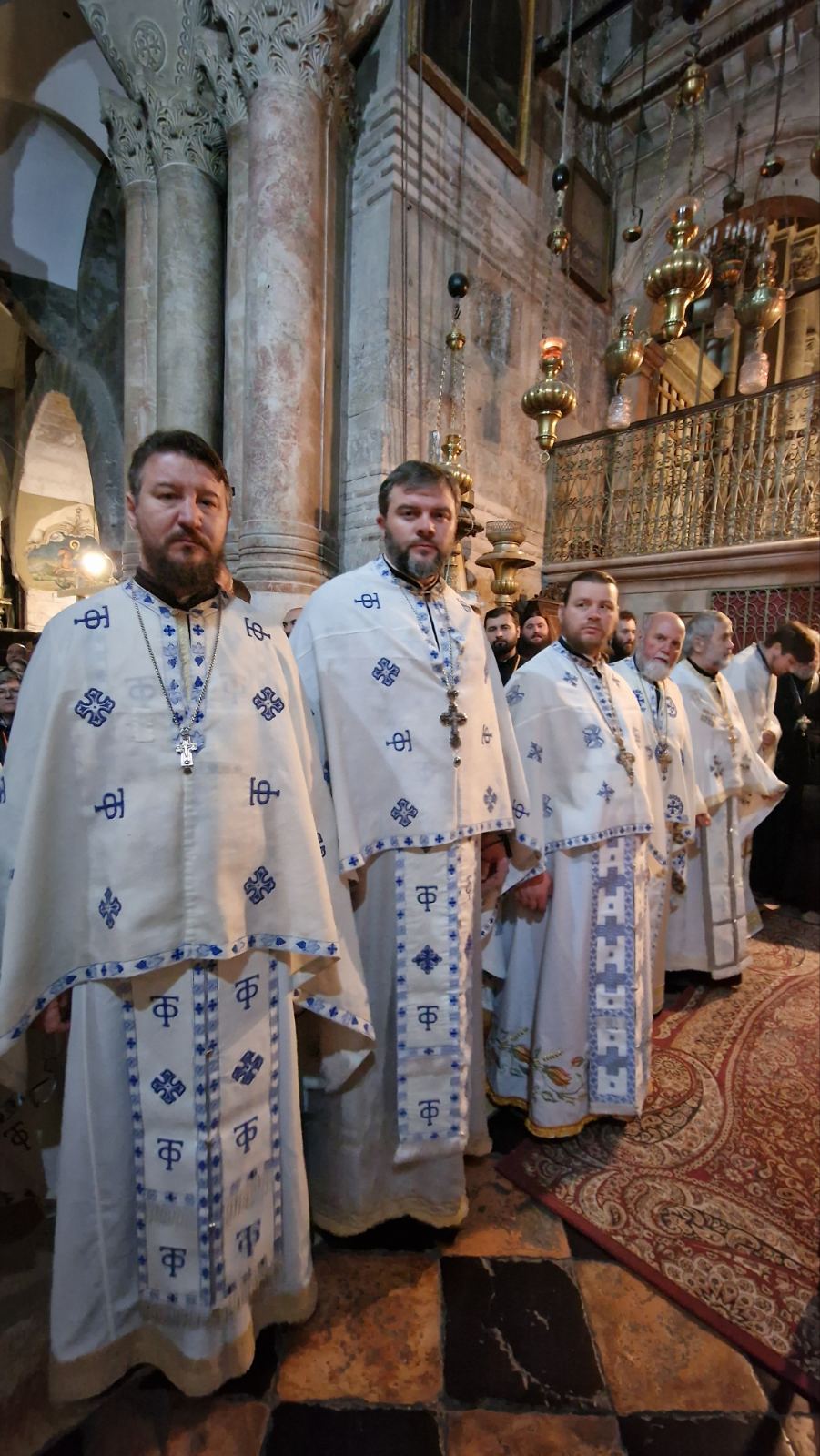 В ночь с субботы на воскресенье, 10-11 декабря 2022 года, в Неделю 26-ю по Пятидесятнице, Высокопреосвященный Митрополит Кишиневский и всея Молдовы Владимир в сослужении Высокопреосвященного архиепископа Мадабского Аристовула (Иерусалимский Патриархат), Преосвященного епископа Величского Сиония (Болгарская Православная Церковь), Преосвященного епископа Сорокского Иоанна, викария Кишиневской епархии, совершил ночную Божественную литургию святителя Иоанна Златоуста в храме Воскресения Христова (Гроба Господня) в Иерусалиме. Сослужили архипастырям внушительный собор священнослужителей и диаконов, при стечении сотен паломников из Молдовы и других стран.
