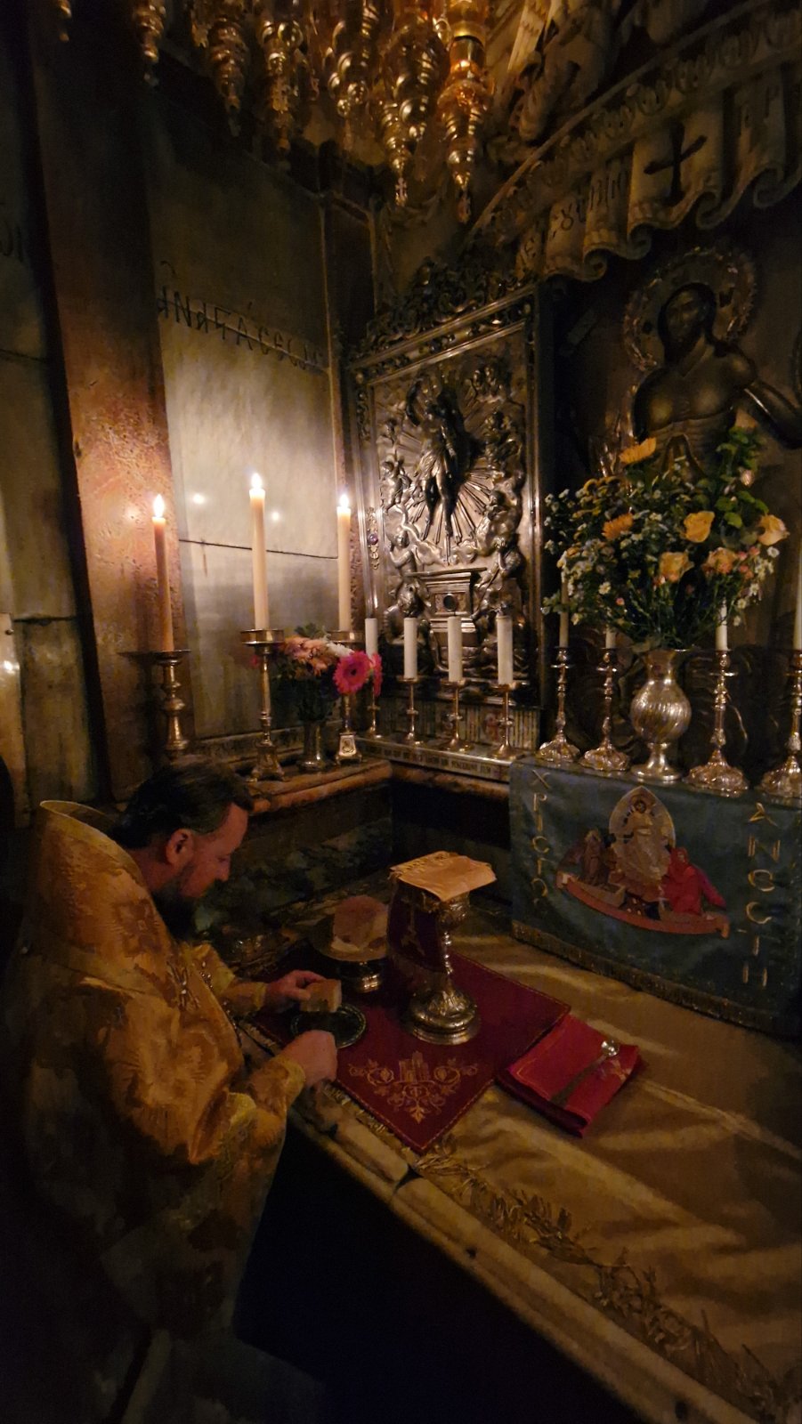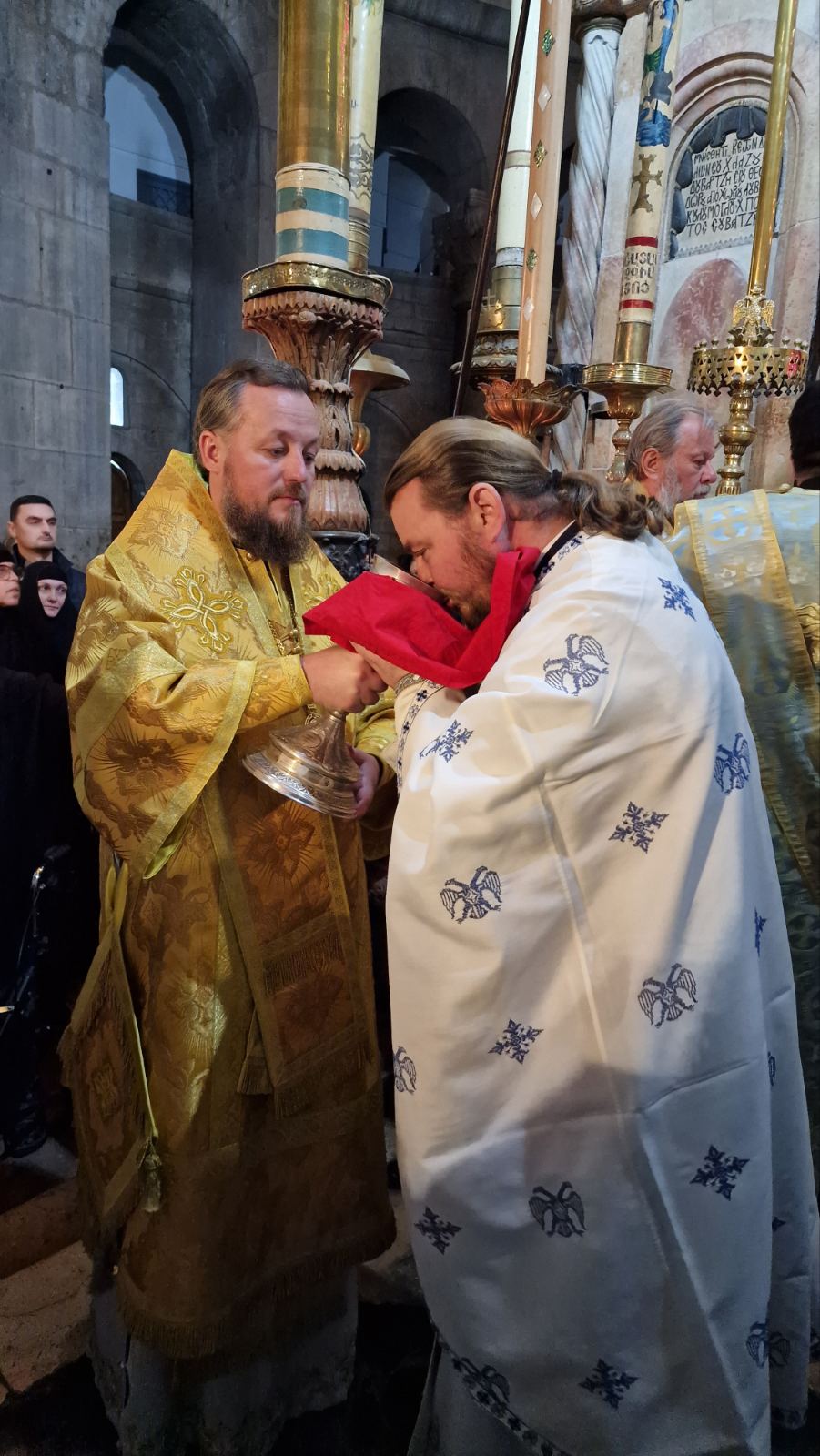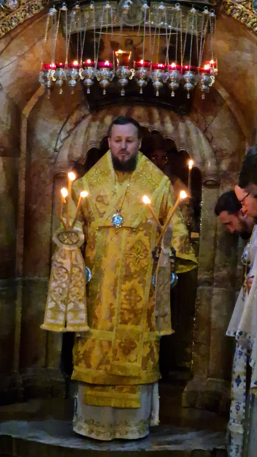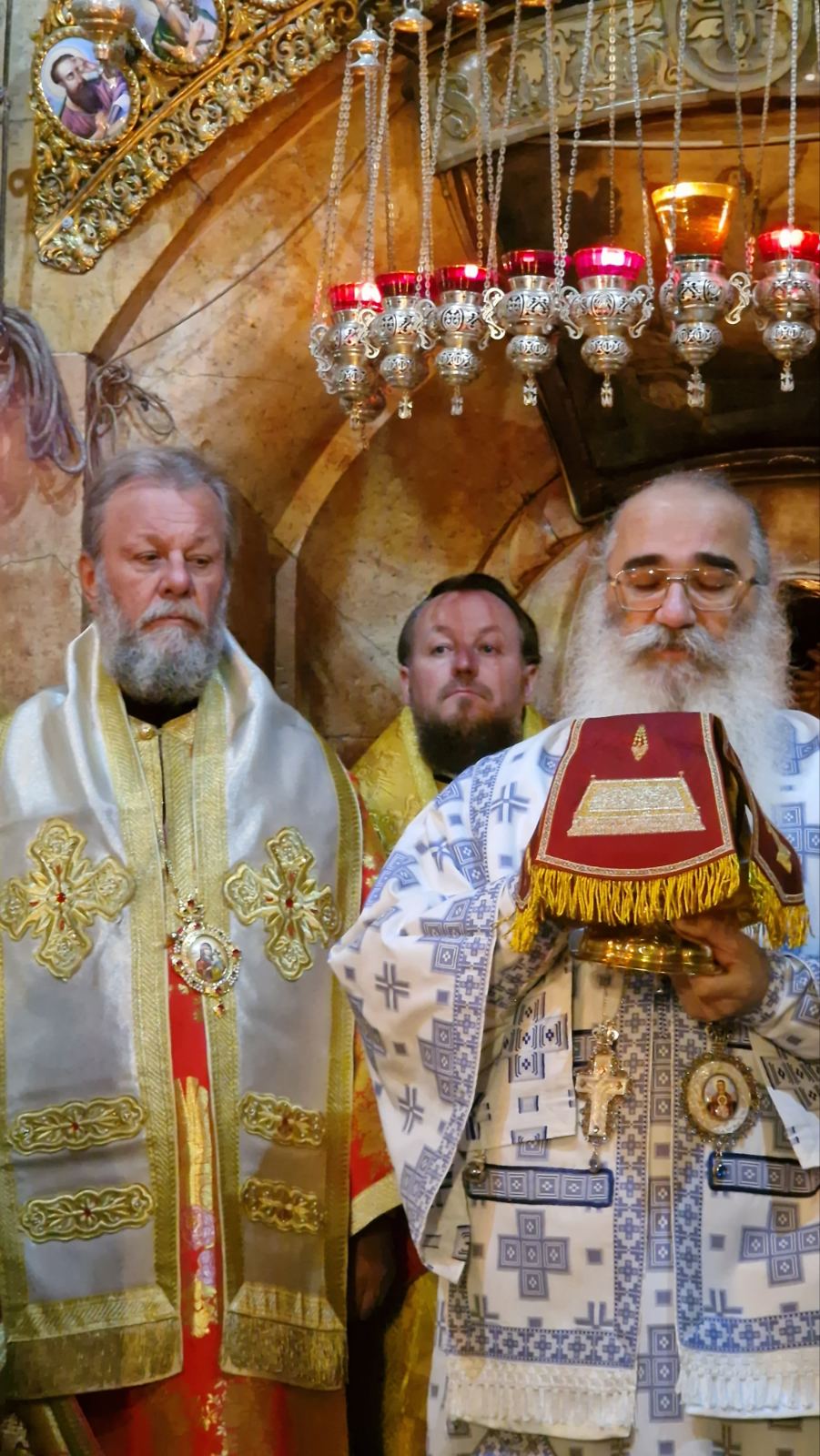 В ночь с субботы на воскресенье, 10-11 декабря 2022 года, в Неделю 26-ю по Пятидесятнице, Высокопреосвященный Митрополит Кишиневский и всея Молдовы Владимир в сослужении Высокопреосвященного архиепископа Мадабского Аристовула (Иерусалимский Патриархат), Преосвященного епископа Величского Сиония (Болгарская Православная Церковь), Преосвященного епископа Сорокского Иоанна, викария Кишиневской епархии, совершил ночную Божественную литургию святителя Иоанна Златоуста в храме Воскресения Христова (Гроба Господня) в Иерусалиме. Сослужили архипастырям внушительный собор священнослужителей и диаконов, при стечении сотен паломников из Молдовы и других стран.