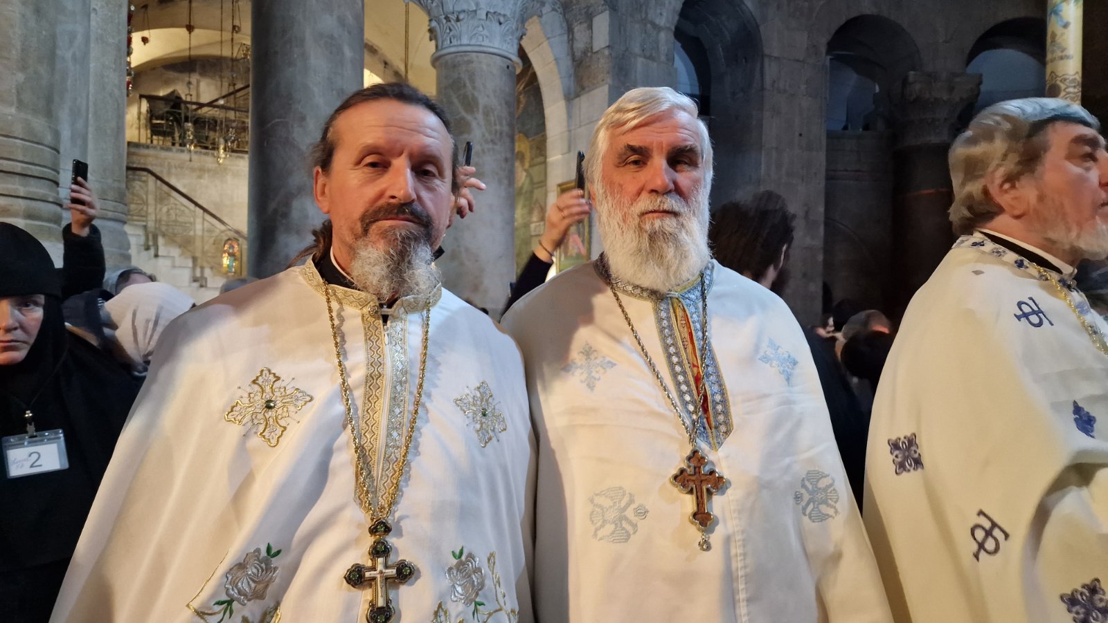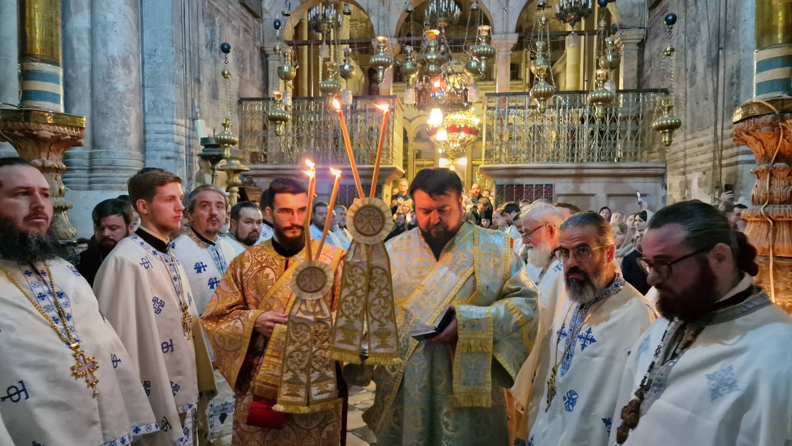 Нет ничего святее, более возвышенного, величественнее, торжественнее и более животворящего Божественной литургии. Во время Литургии Церковь становится Небом на земле, а совершители этого великой службы — священнослужители, прообразуют собой Самого Христа, ангелов, херувимов, серафимов и апостолов. Об этом богослужении, совершенном в ночь с субботы на воскресенье, наши паломники, присутствовавшие в Иерусалимском храме Воскресения Христова, свидетельствовали, что испытали подлинную пасхальную радость — Пасхи посреди зимы.