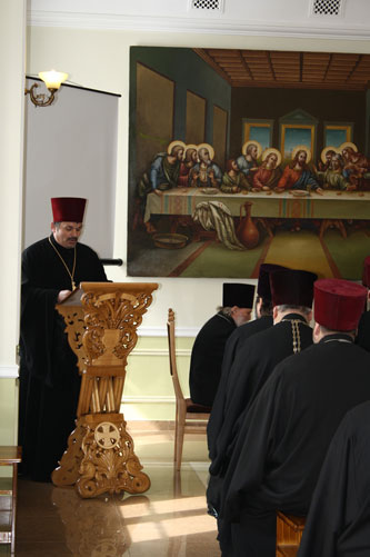 Модератором встречи на тему «Миссия эрудированного, благочестивого и мудрого священника в послушании и исповедание веры через духовные дары» был отец благочинный, митр. прот. Виктор Михалаки. Священники говорили о месте и роли алтарного служителя в современном обществе, а также о знаниях, необходимых каждому  священнику, чтобы быть полезным ближнему и добросовестно исполнять свои пастырские задачи.