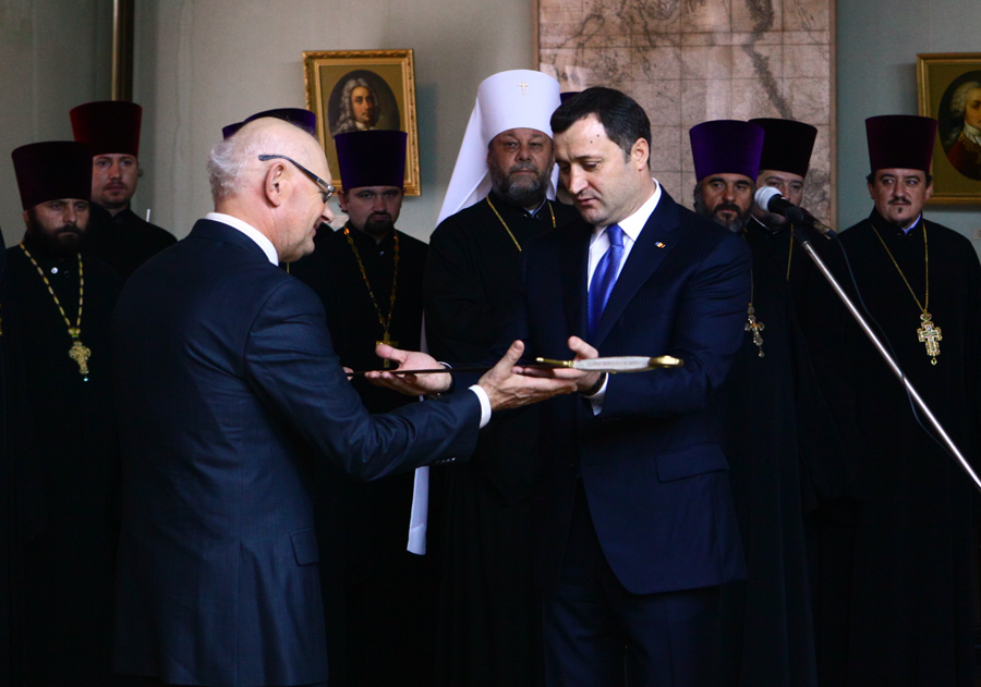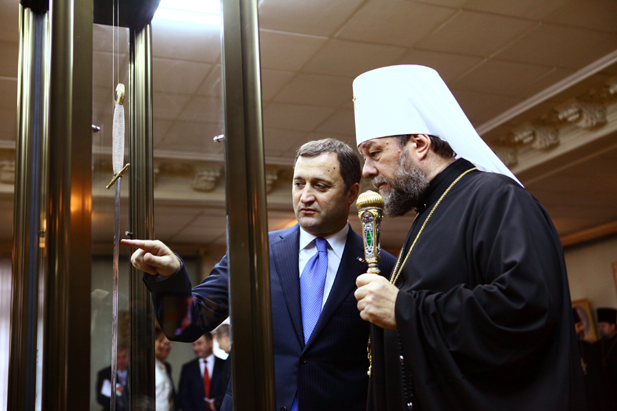 Высокопреосвященный Владимир, митрополит Кишиневский и всея Молдовы в окружении духовенства участвовал в презентации копии меча Святого Штефана Великого, подаренной премьер-министру Владу Филату его турецким коллегой Тайипом Эрдоганом.