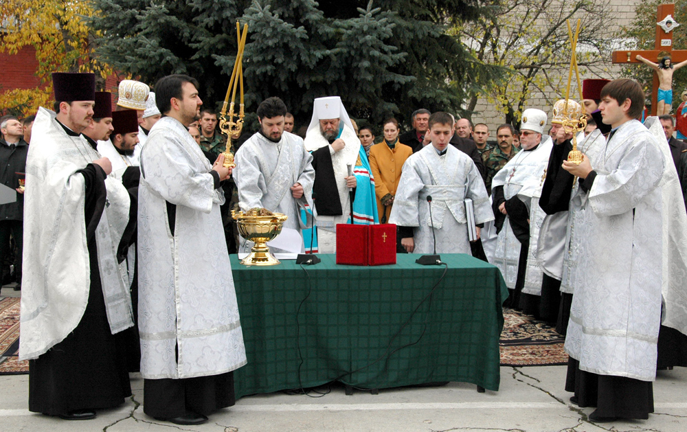 Богослужение было совершено в присутствии воинского состава и высокого военного руководства: Игоря Кутие, бригадного генерала, главного заместителя начальника Главного штаба Национальной армии Республики Молдова, Михаила Буклиша, полковника, ректора Военной академии,  других высоких должностных лиц.