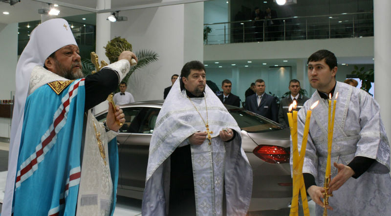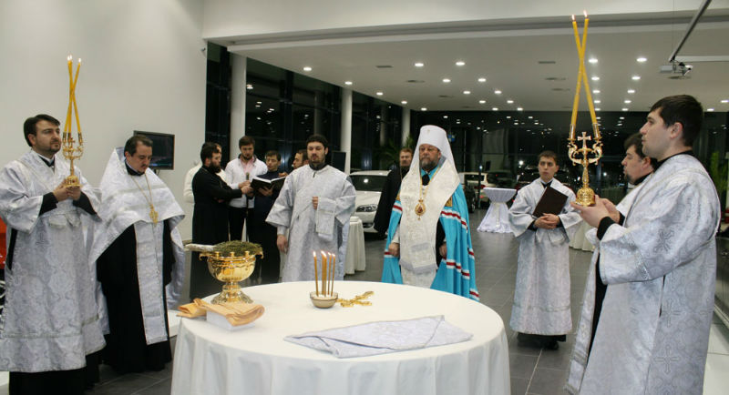 В торжественной обстановке, в присутствии руководства и сотрудников центра BMW в Молдове, митрополит Владимир, которому сослужил собор священнослужителей, совешил чин освящения автосалона в Кишиневе.