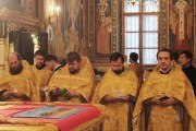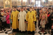 Сослужили Его Высокопреосвященству собор священнослужителей Кишиневского благочиния во главе с ключарем кафедрального храма митр. прот. Вадимом Кейбашем, секретарем Митрополии.