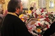 По заамвонной молитве Митрополит Владимир вместе с сослужащим духовенством совершил благодарственный молебен.