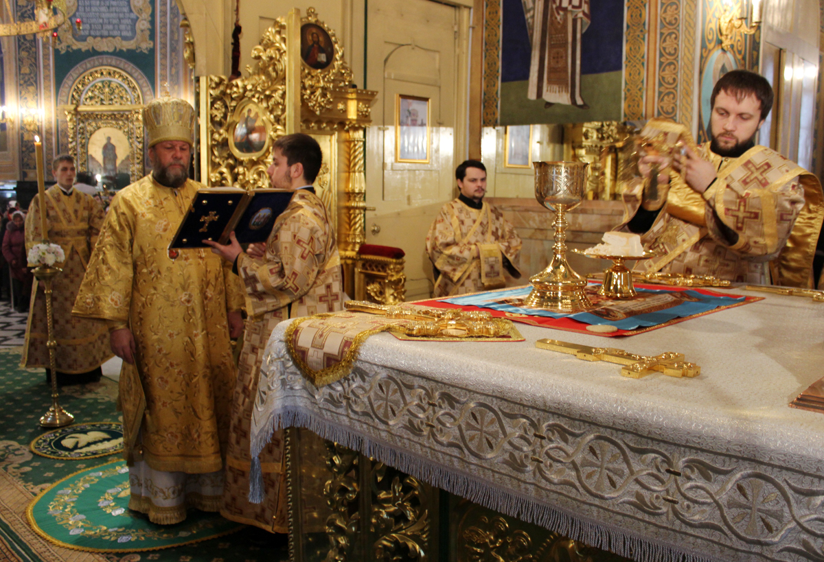 Проповедь перед причастием произнес соборный клирик митрофорный протоирей Федор Тихон.