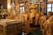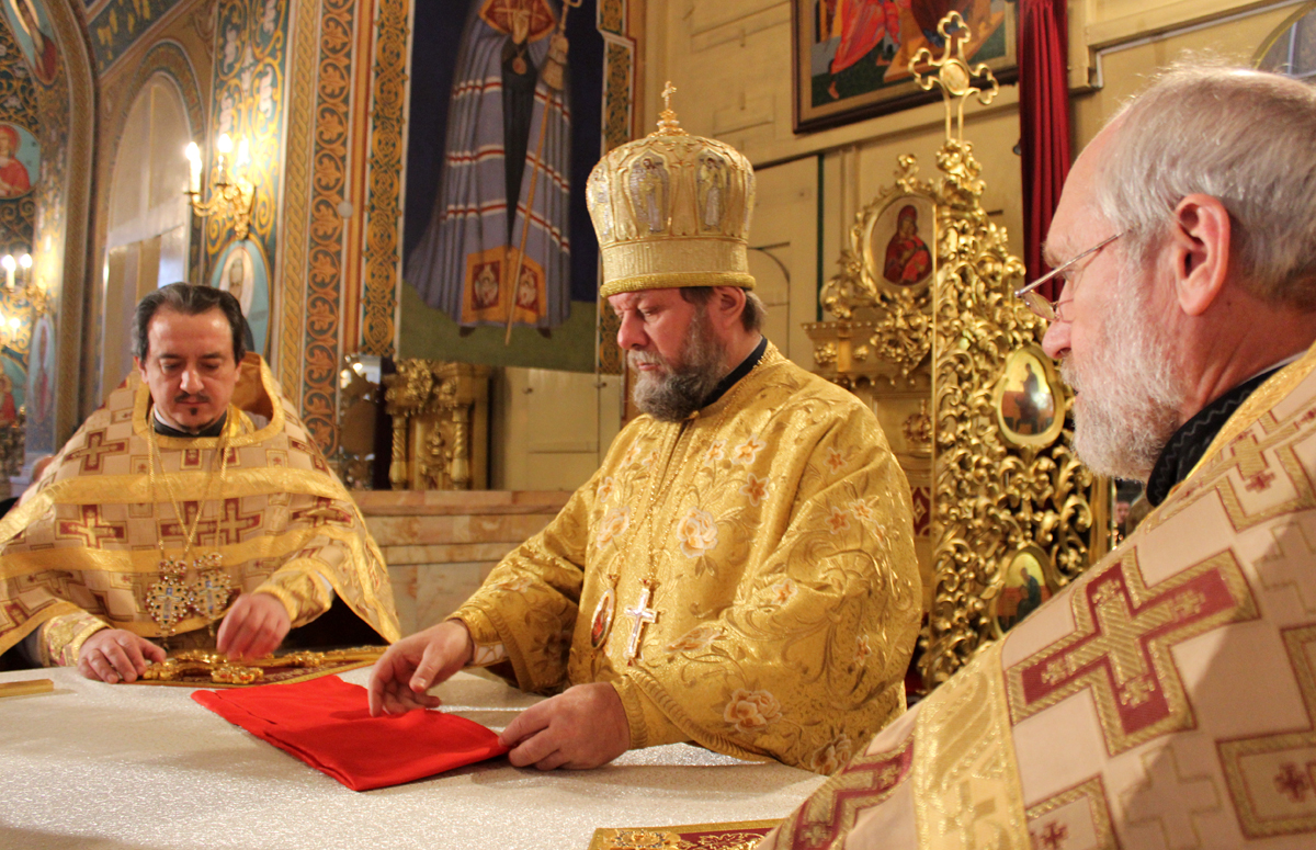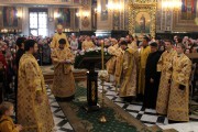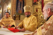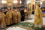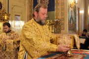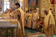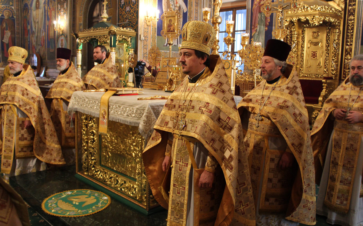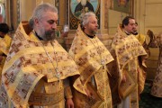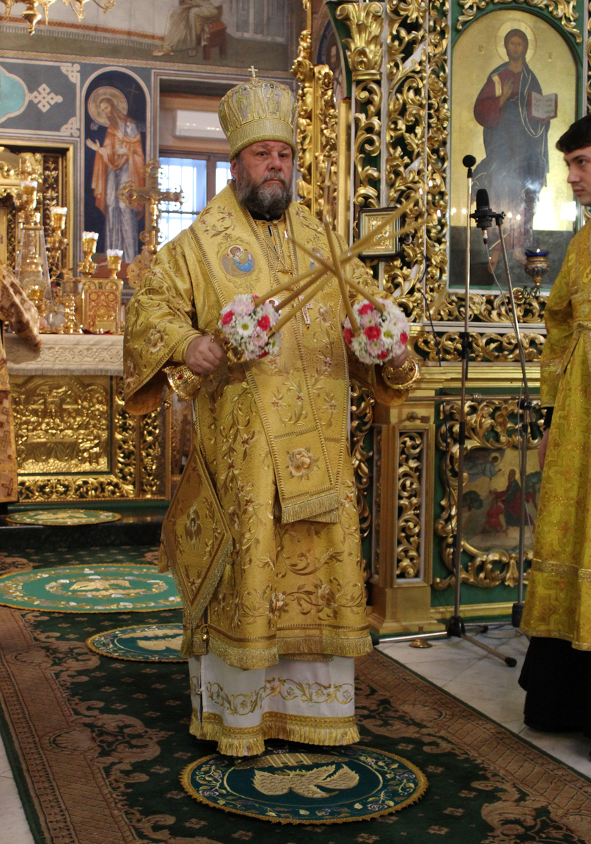Его Высокопреосвященству сослужили: митрофорный протоиерей Вадим Кейбаш, секретарь Кишиневско-Молдавской Митрополии, протоиерей Андрей Секрий, настоятель Михайло-Архангельского храма с. Трушены, Кишиневского мун-я, игумен Трифон (Чобану), насельник Свято-Вознесенского Ново-Нямецкого Кицканского мужского монастыря, соборное духовенство.