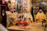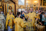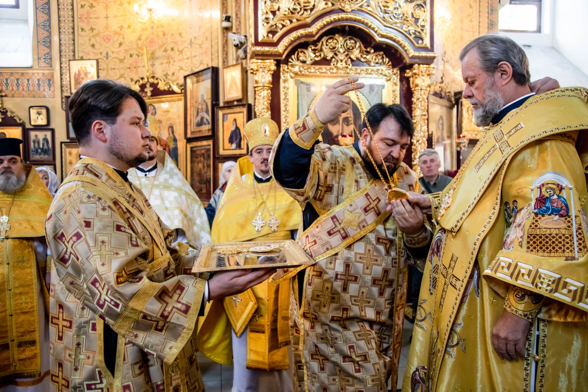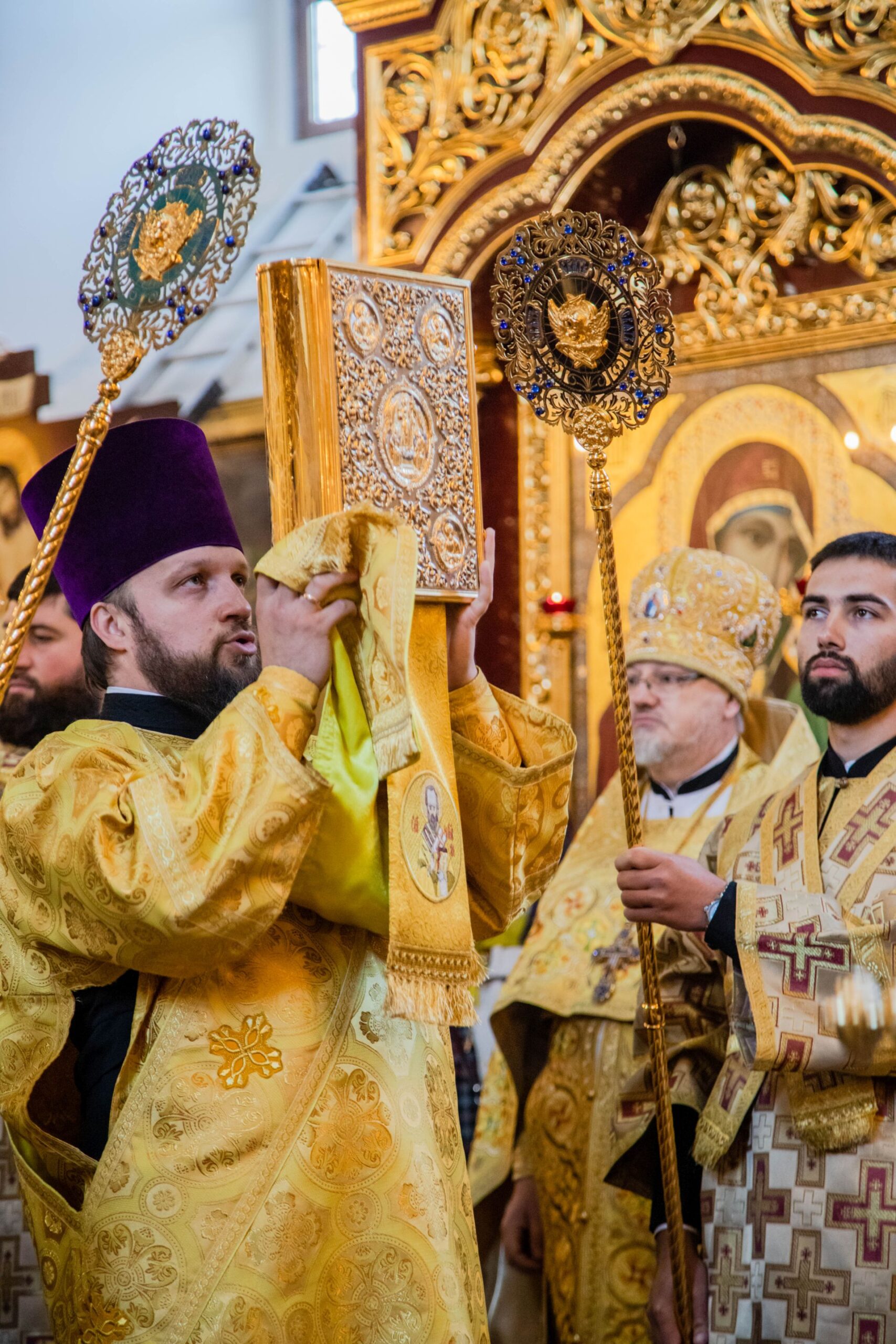В завершение Высокопреосвященный Митрополит Владимир обратился к участникам праздничного богослужения с архипастырским словом. Его Высокопреосвященство высоко оценил пастырские труды отца настоятеля и всестороннюю поддержку прихожан по благоустройству храма, его внешнего и наружного убранства. Все участники богослужения получили из рук Владыки Митрополита иконки с архиерейским благословением с образом святителя Николая Чудотворца.