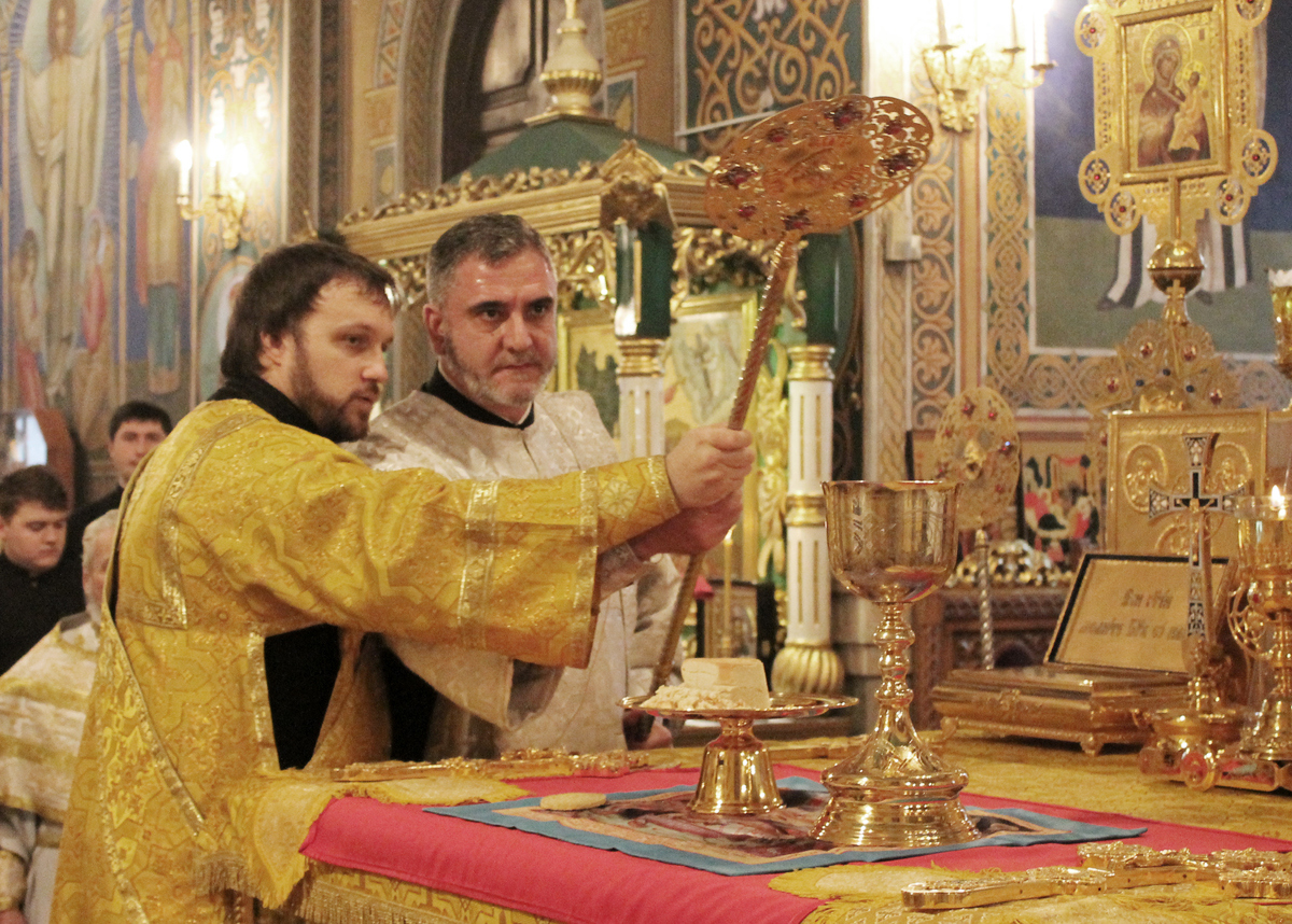 Сослужили Его Высокопреосвященству собор священнослужителей Кишиневского благочиния во главе с ключарем кафедрального храма митр. прот. Вадимом Кейбашем, секретарем Митрополии.