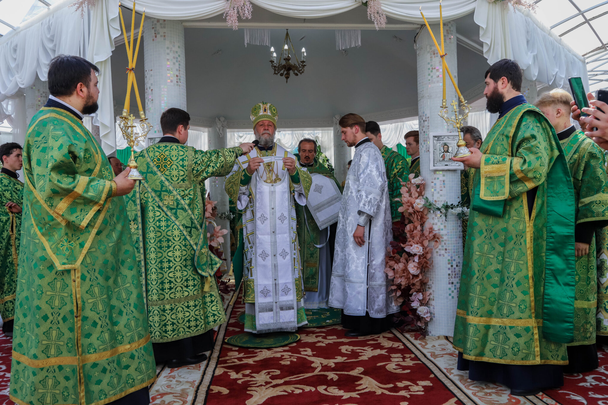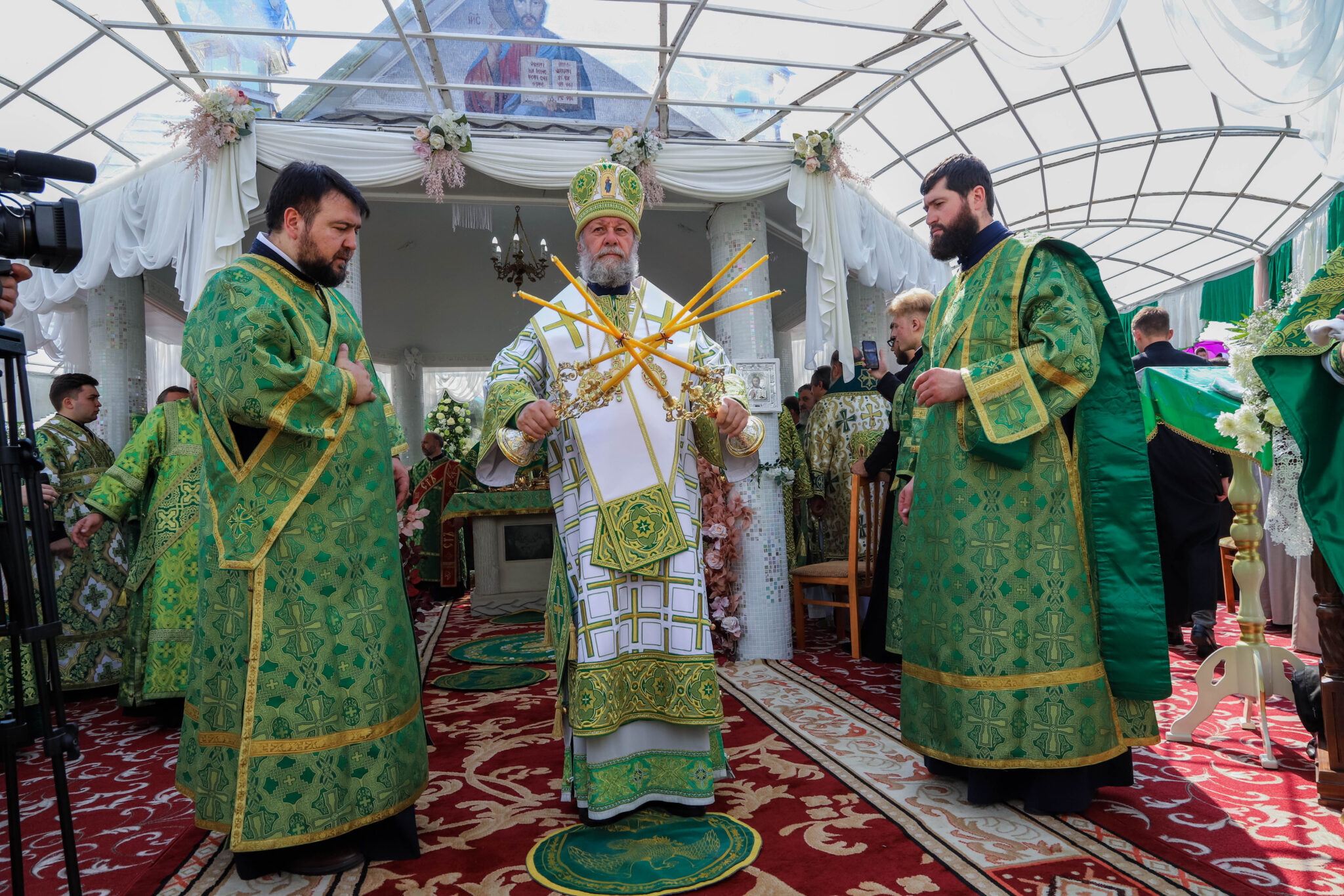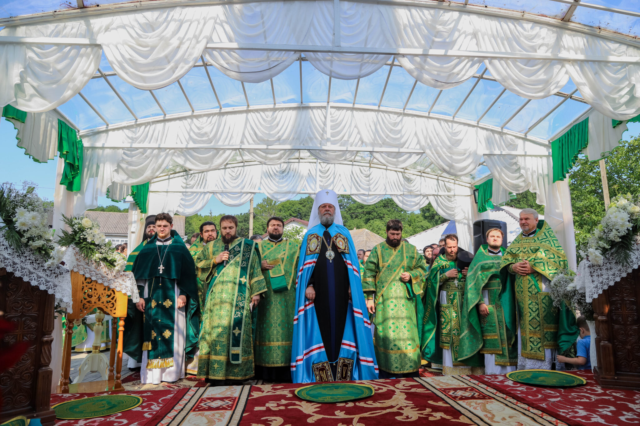 Богослужебные песнопения исполнял большой хор Куркиевского Богородице-Рождественского мужского монастыря, под управлением регента Димитрия Буга.