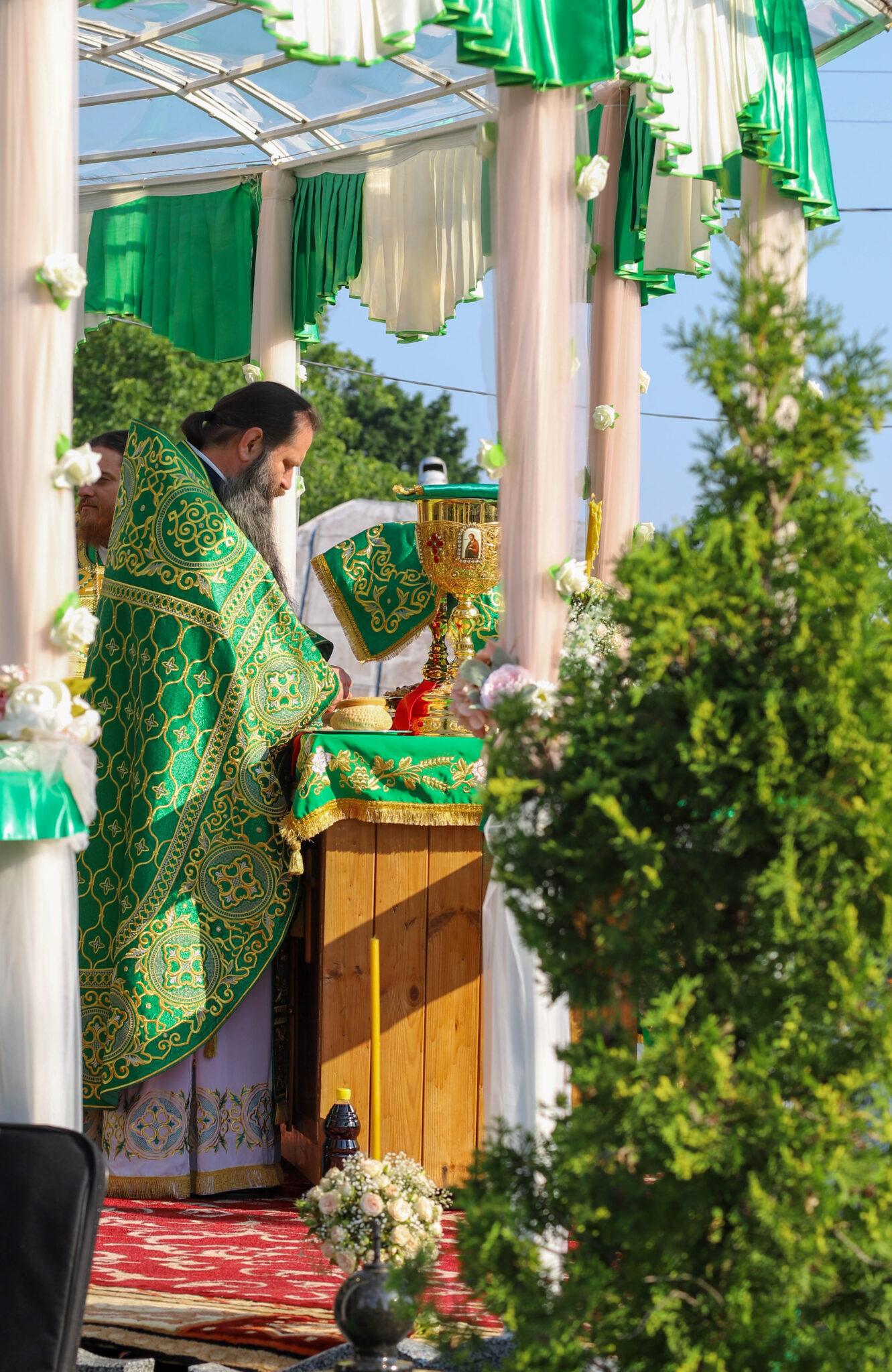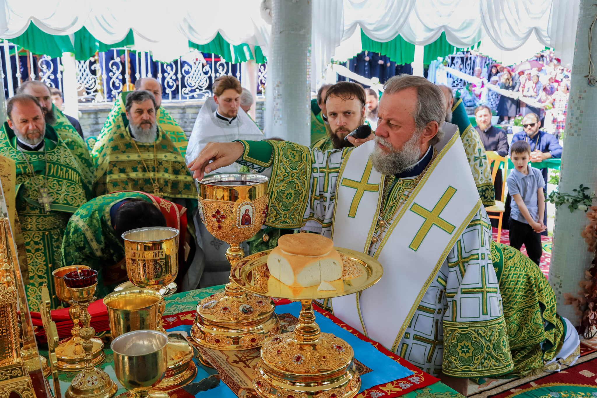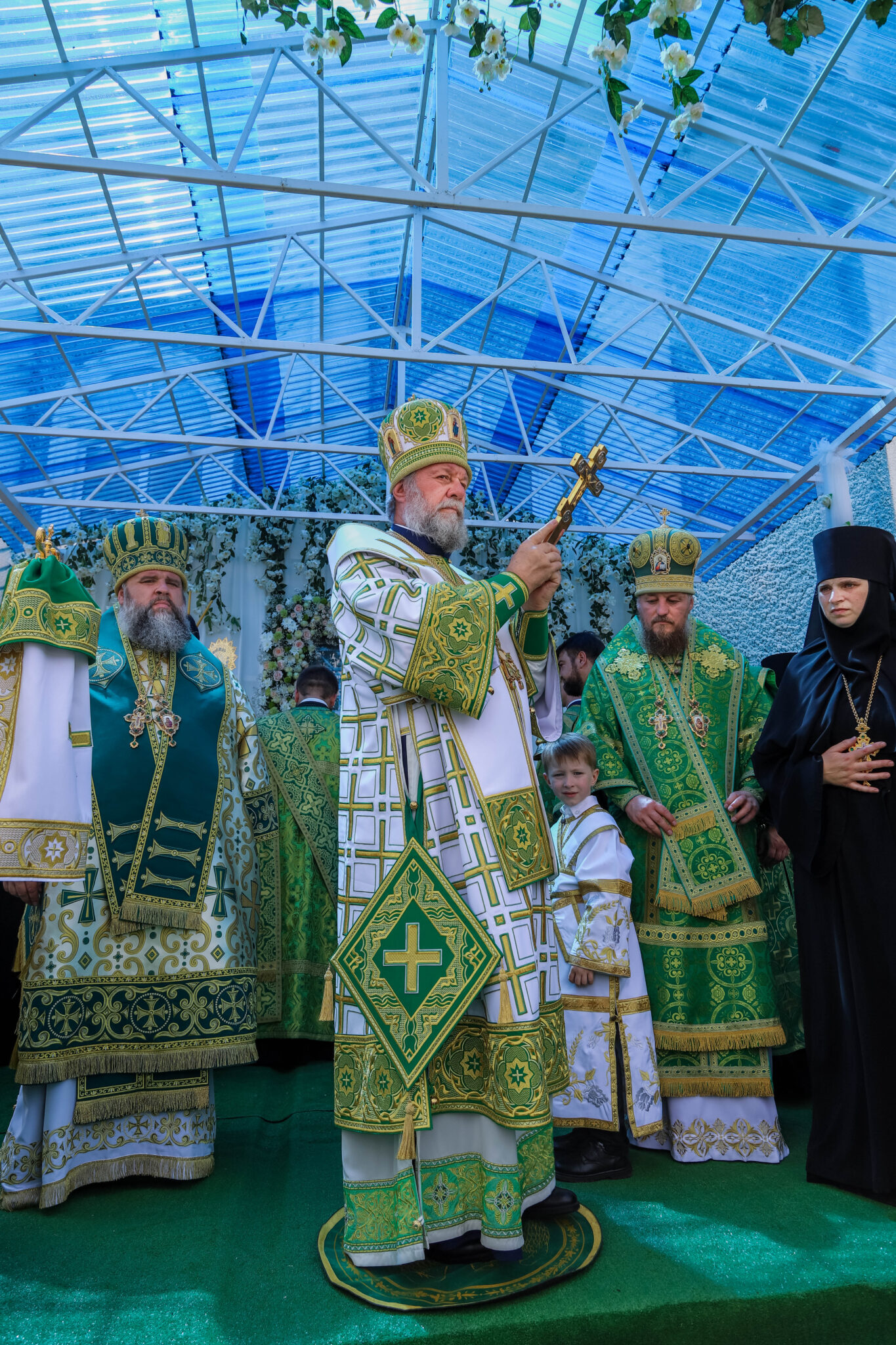 Богослужебные песнопения исполнял большой хор Куркиевского Богородице-Рождественского мужского монастыря, под управлением регента Димитрия Буга.