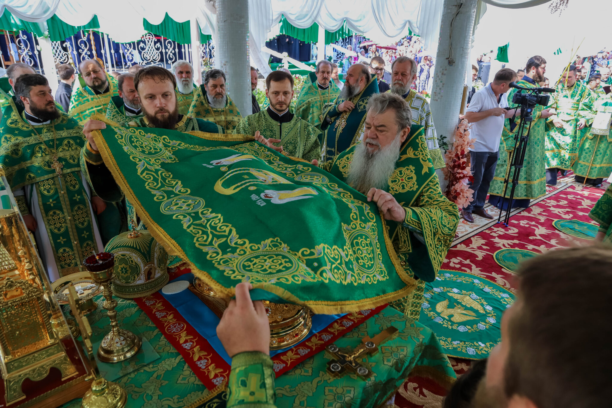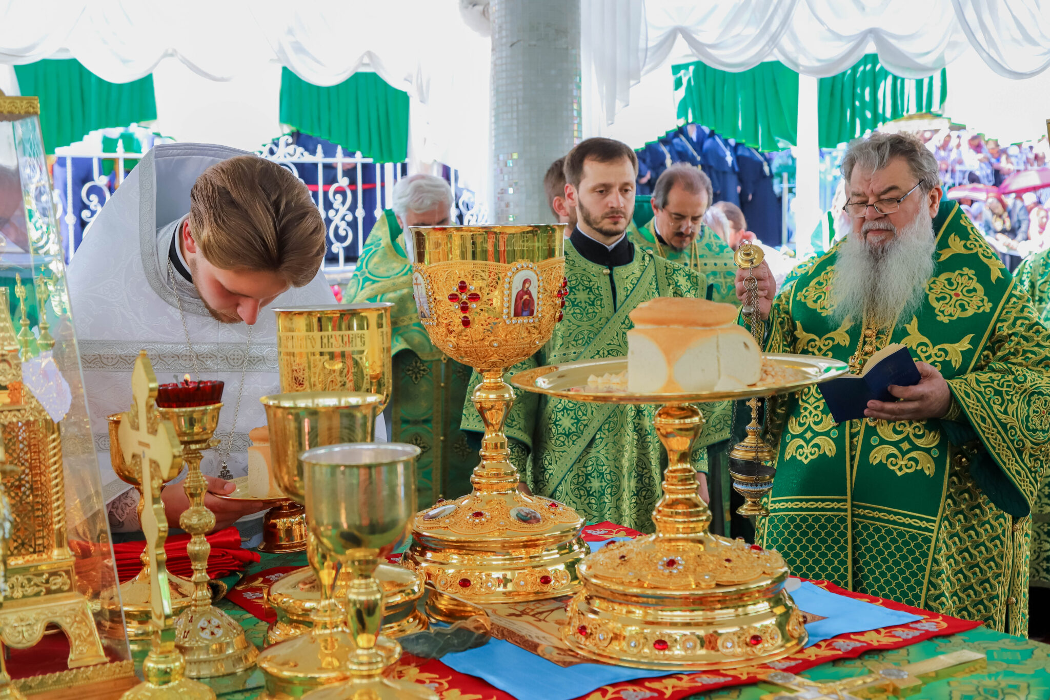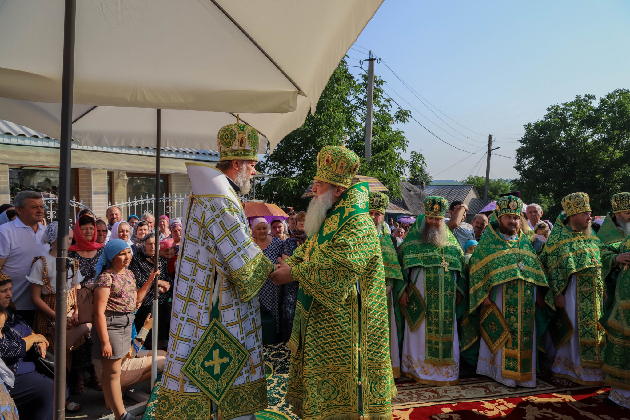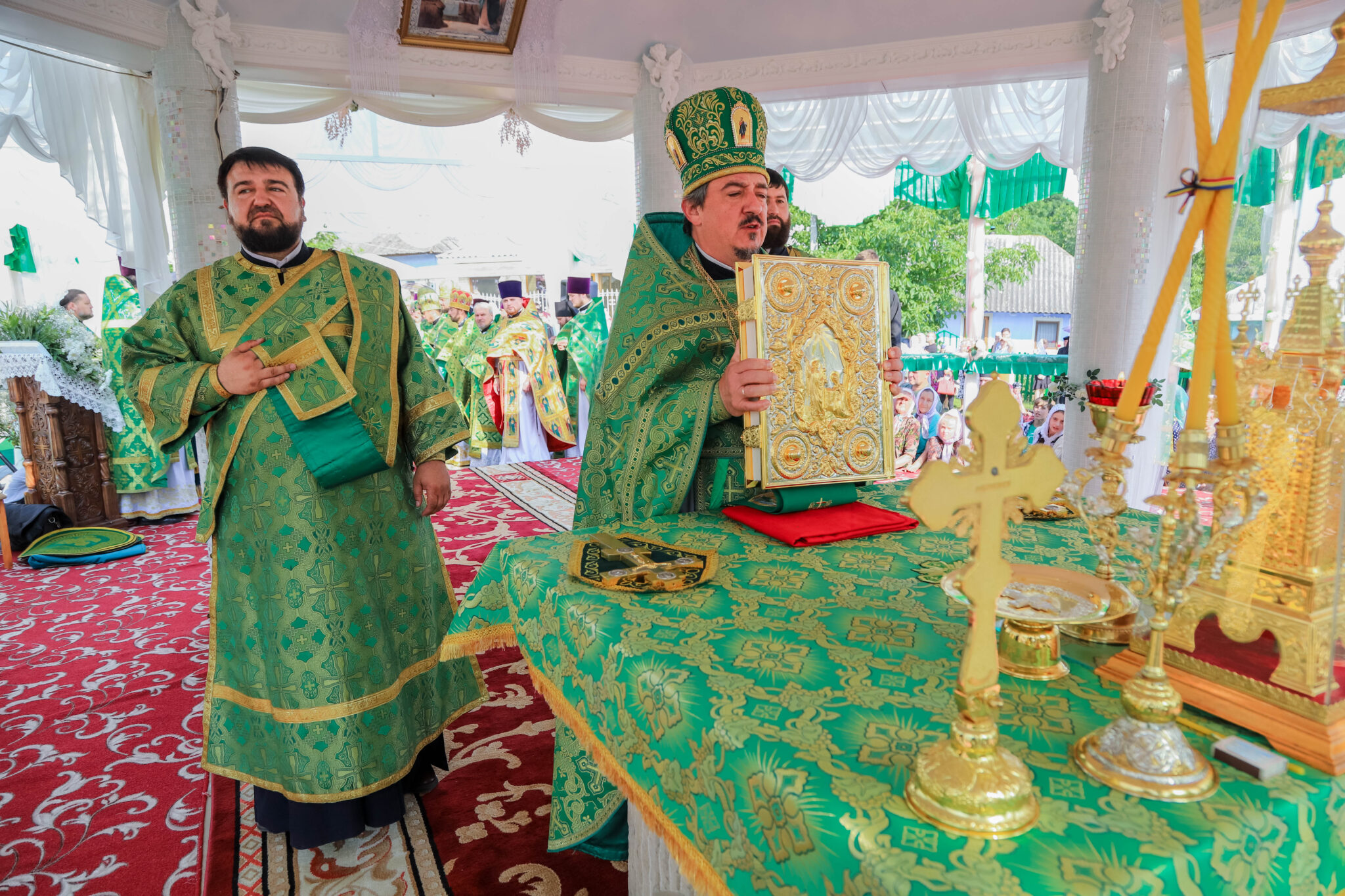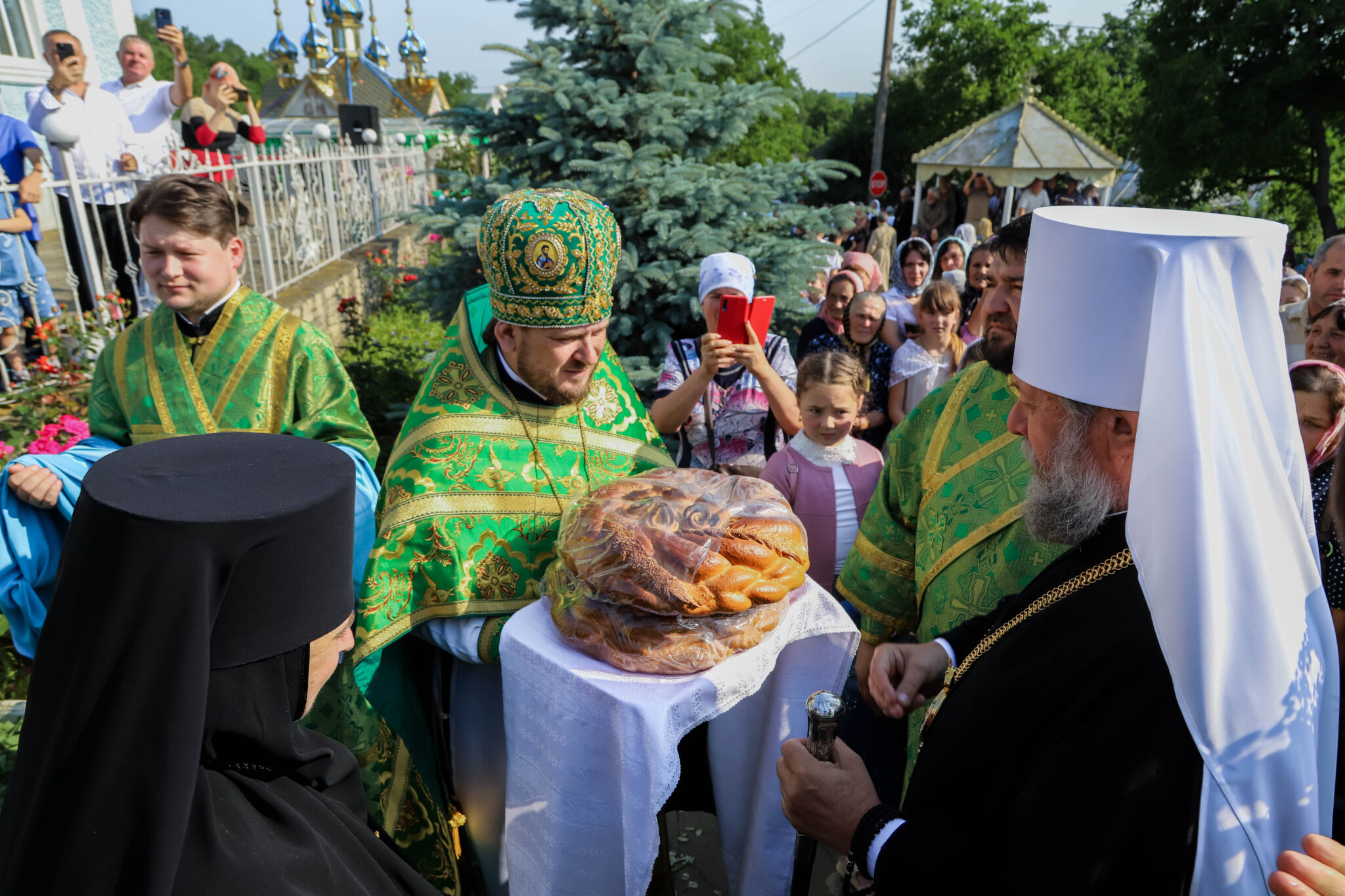 За Литургией Его Высокопреосвященству сослужили: архиепископ Единецкий и Бричанский Никодим, викарные епископы Сорокский Иоанн и Орхейский Силуан, секретарь Кишиневско-Молдавской митрополии митр. прот. Вадим Кейбаш, настоятели монастырей и скитов Молдовы, внушительный собор священнослужителей со всех концов республики, прибывшие в этот день вознести свои молитвы к заступнице нашего народа перед Престолом Божиим — Блаженной Агафией Кушеловской.