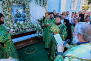 По окончании богослужения, Высокопреосвященный Митрополит Владимир возглавил благодарственный молебен, после чего совершил славление перед ракой с честными мощами Блаженной Агафии Кушеловской.
