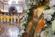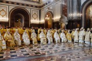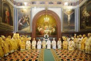 По окончании Литургии Святейший Патриарх Московский и всея Руси Кирилл совершил молебное пение в праздник святого равноапостольного князя Владимира и в память Крещения Руси, во время которого Предстоятели и представители Поместных Православных Церквей находились на амвоне Храма Христа Спасителя.