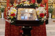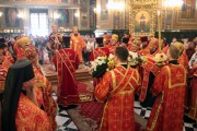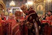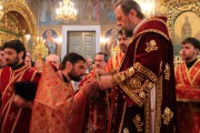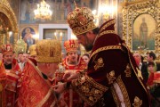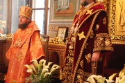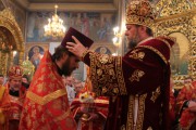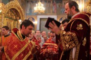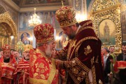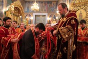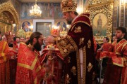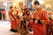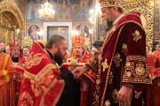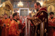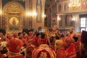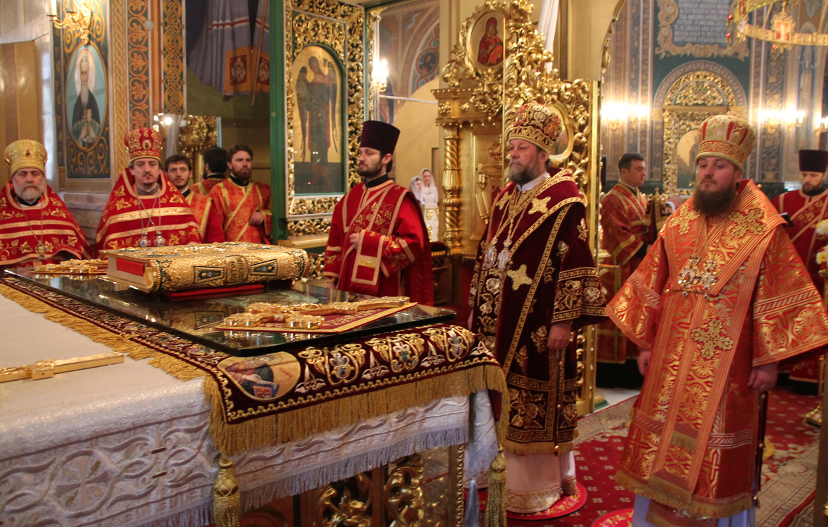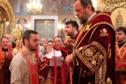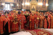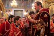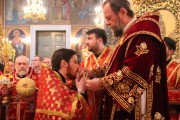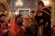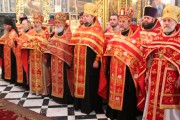 Его Высокопреосвященству сослужили: Преосвященный епископ Сорокский Иоанн, викарий Кишиневской епархии, секретарь Кишиневско-Молдавской митрополии митр. прот. Вадим Кейбаш, благочинный церквей Яловенского района митр. прот. Анатолий Стефанов, настоятель Никольского Добрушского мужского монастыря игумен Петр (Томачинский), настоятель Успенского Бутученского мужского скита игумен Владимир (Поя), священнослужители Яловенского и Кишиневского благочиний, соборное духовенство.