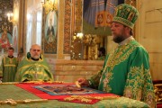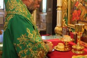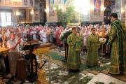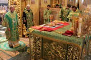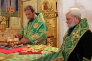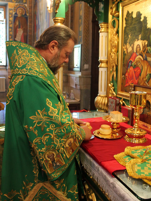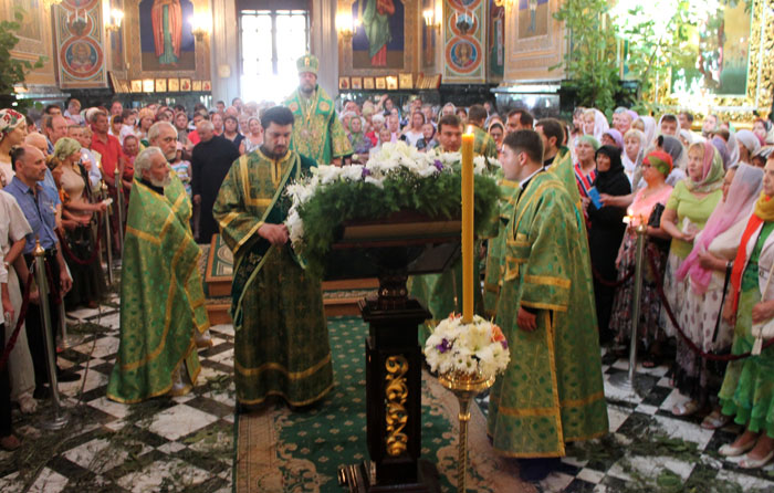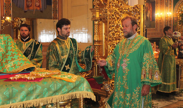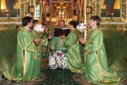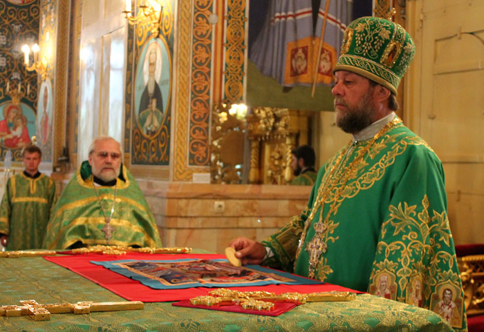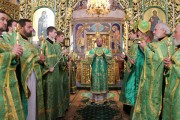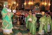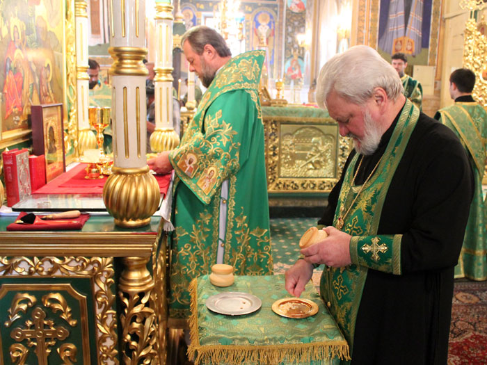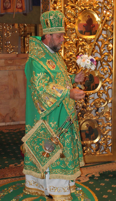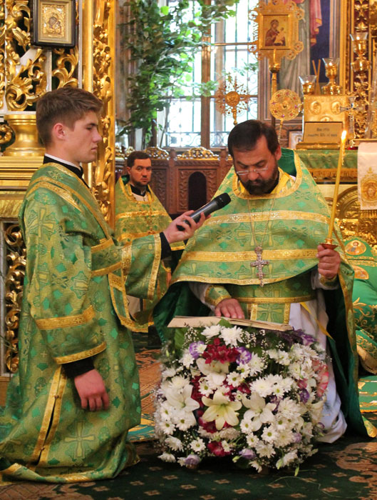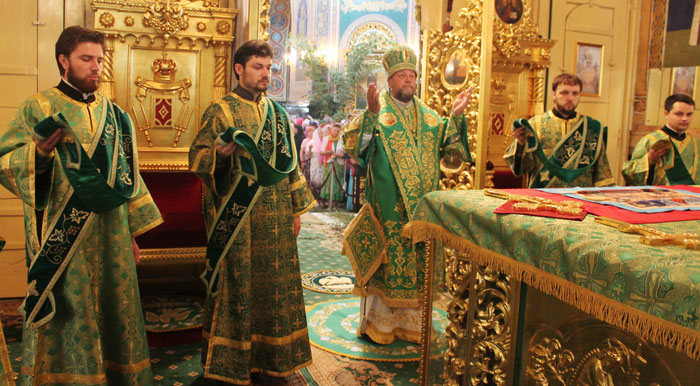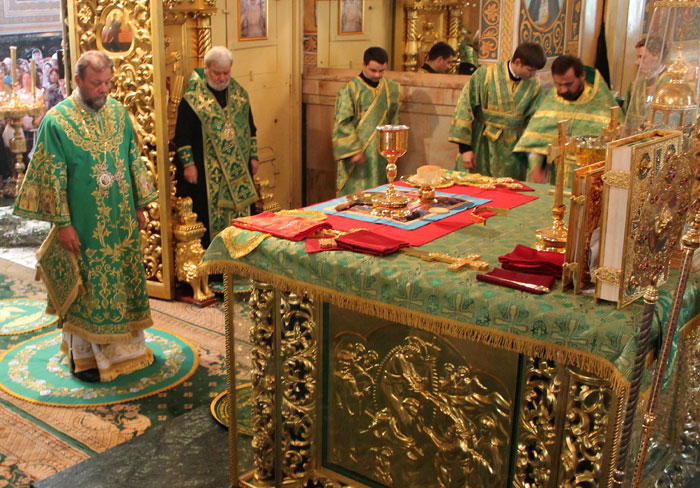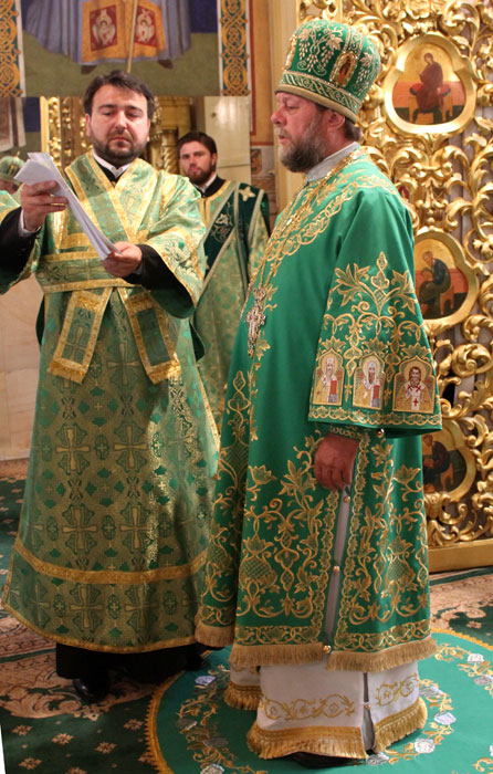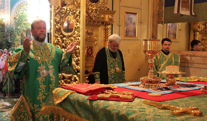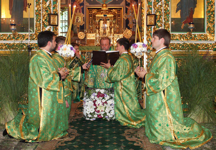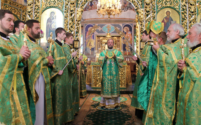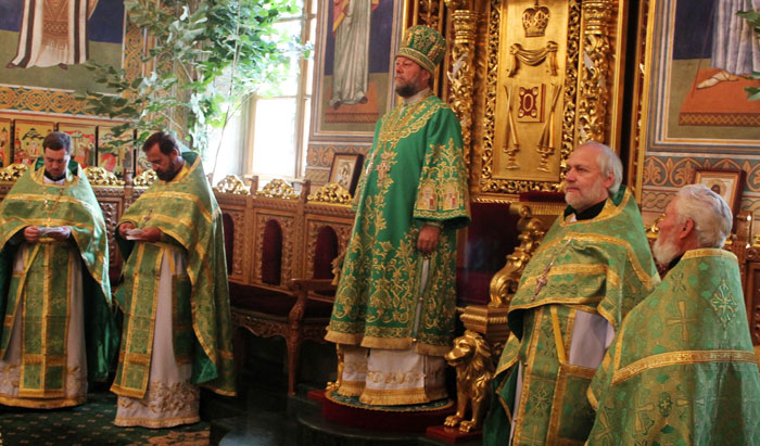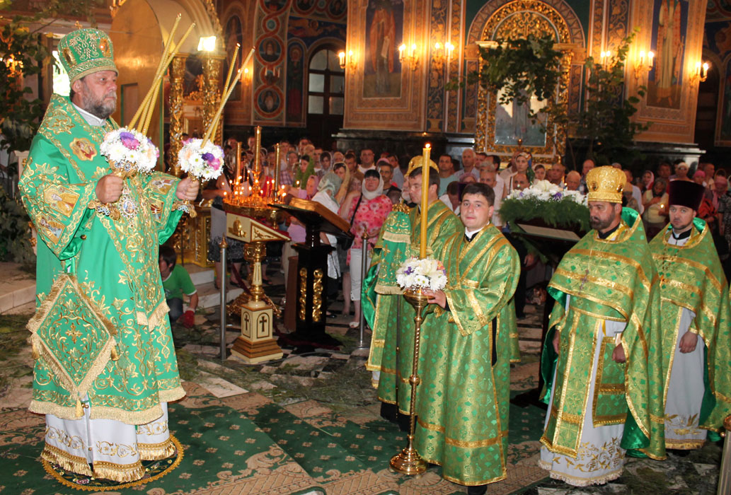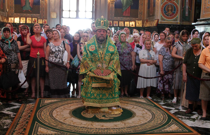 По окончании Божественной литургии, Митрополит Владимир совершил великую вечерню праздника Пятидесятницы с чтением коленопреклонных молитв, во время которых все присутствующие верующие вместе со своим архипастырем, объединенные единым молитвенным порывом, испрашивали у Господа Вседержителя не отвращать своей милости от нашего народа и от нашей земли.