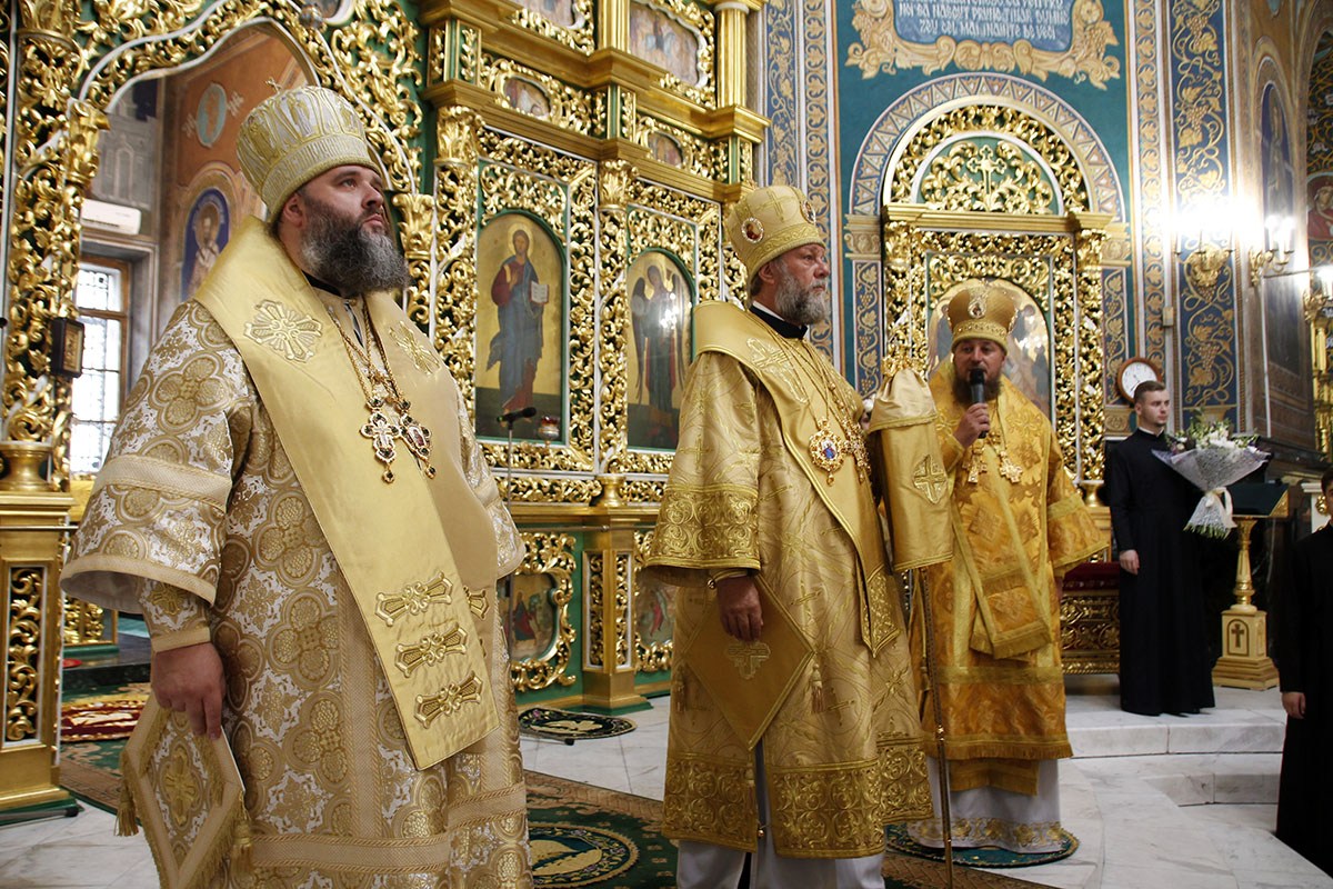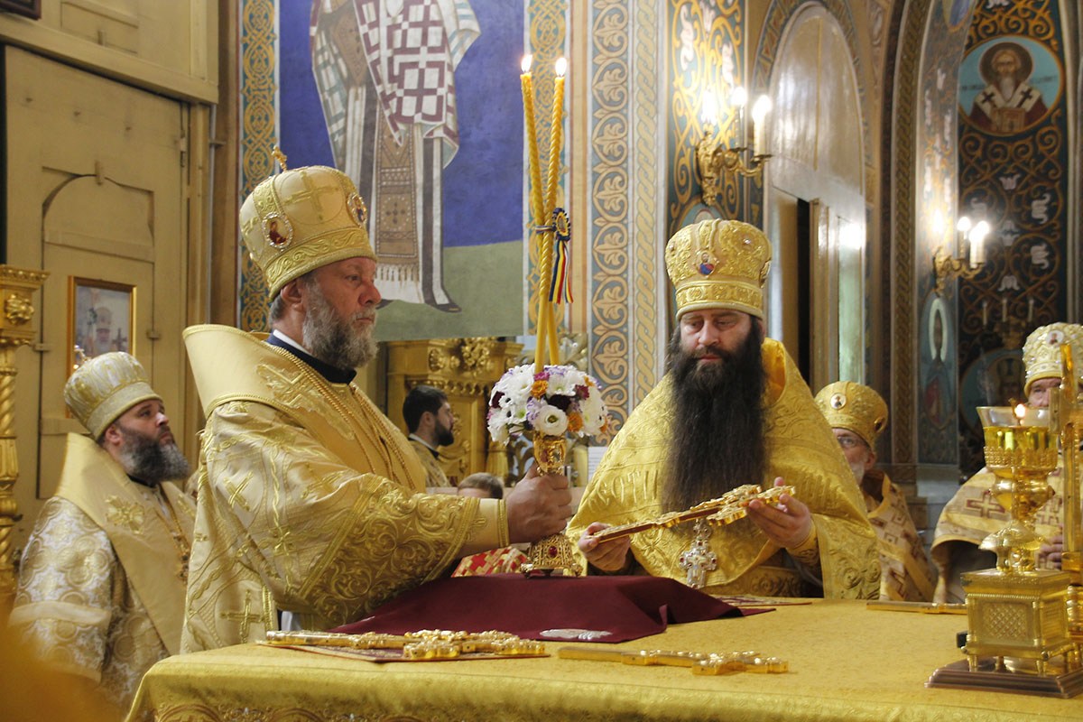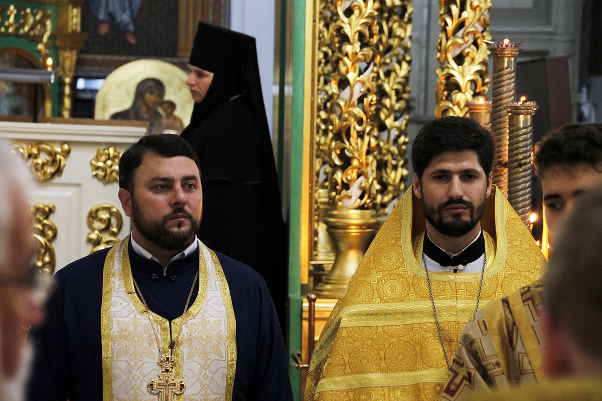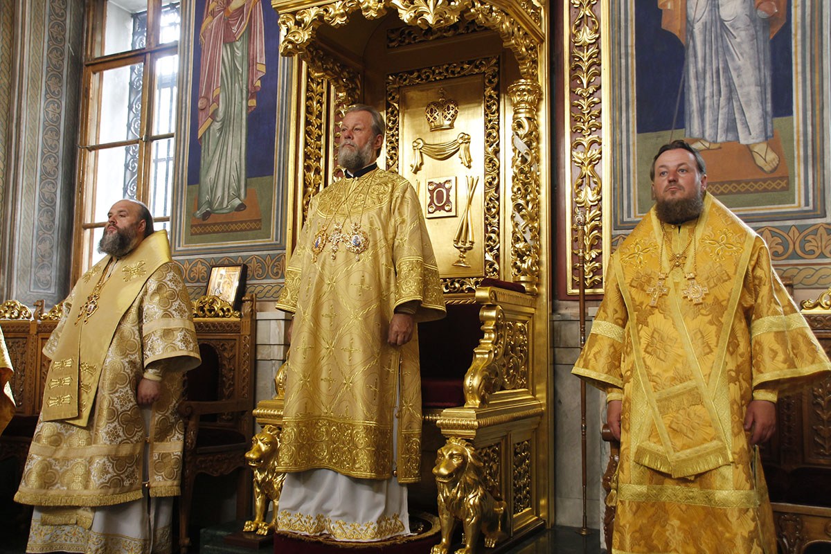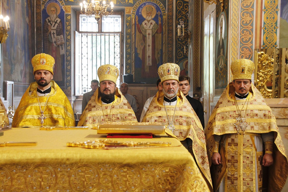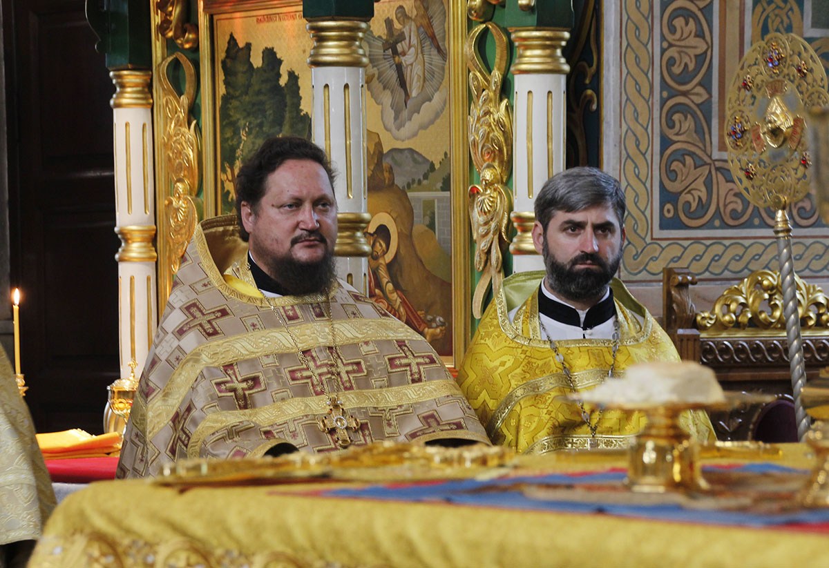 Его Высокопреосвященству сослужили: викарные епископы Сорокский Иоанн и Орхейский Силуан, митр. прот. Вадим Кейбаш, секретарь Молдавской митрополии, митр. прот. Николай Чобану, председатель Синодального отдела по культурным связям с общественностью, митр. прот. Николай Кравец, секретарь Сорокского викариатства и благочинный Сорокского района, митр. прот. Анатолий Стефанов, благочинный Яловенского района, архим. Филарет (Кузьмин), наместник Каприянского Успенского монастыря, священнослужители Кишиневско-Молдавской митрополии, несущие свое пастырско-миссионерское служение в молдавских диаспорах в Италии, Португалии и Франции, соборное духовенство.