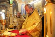 Проповедь перед причастием произнес ключарь кафедрального собора митр. прот. Вадим Кейбаш.