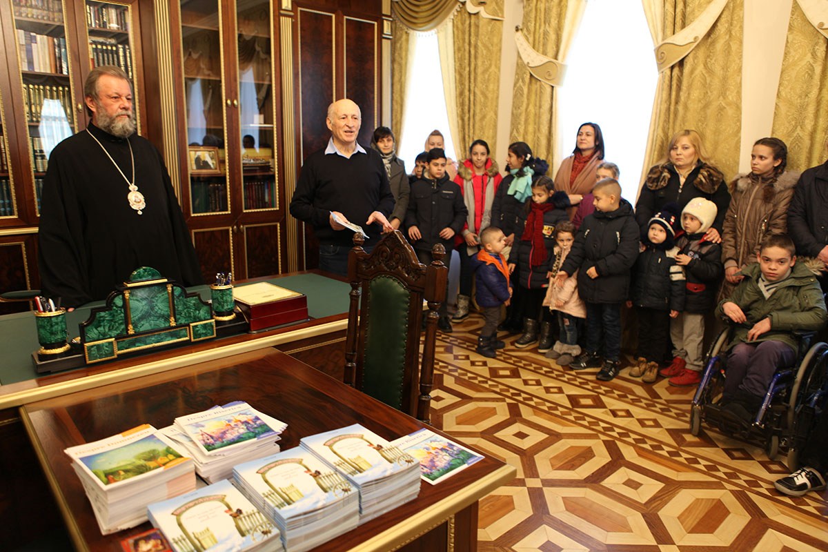 Митрополит Владимир тепло встретил деток, поздравив их с наступающими зимними праздниками Рождества Христова и Новолетия. Иерарх рассказал детям о значении зимних церковных праздников и о том как нужно их благочестиво чествовать.