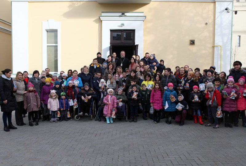 Владыка Митрополит поздравил всех присутствующих, после чего каждый ребенок получил из рук архипастыря праздничные дары и архиерейское благословение.