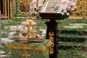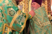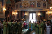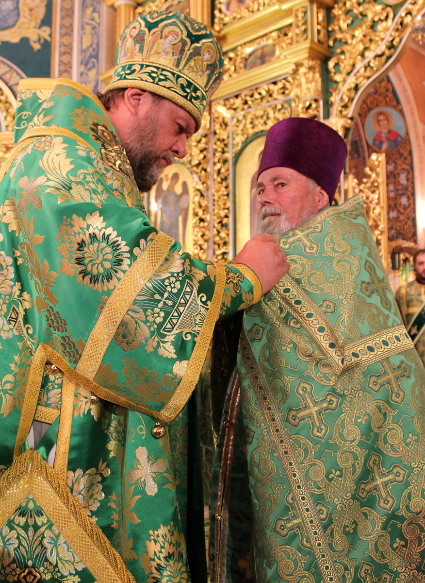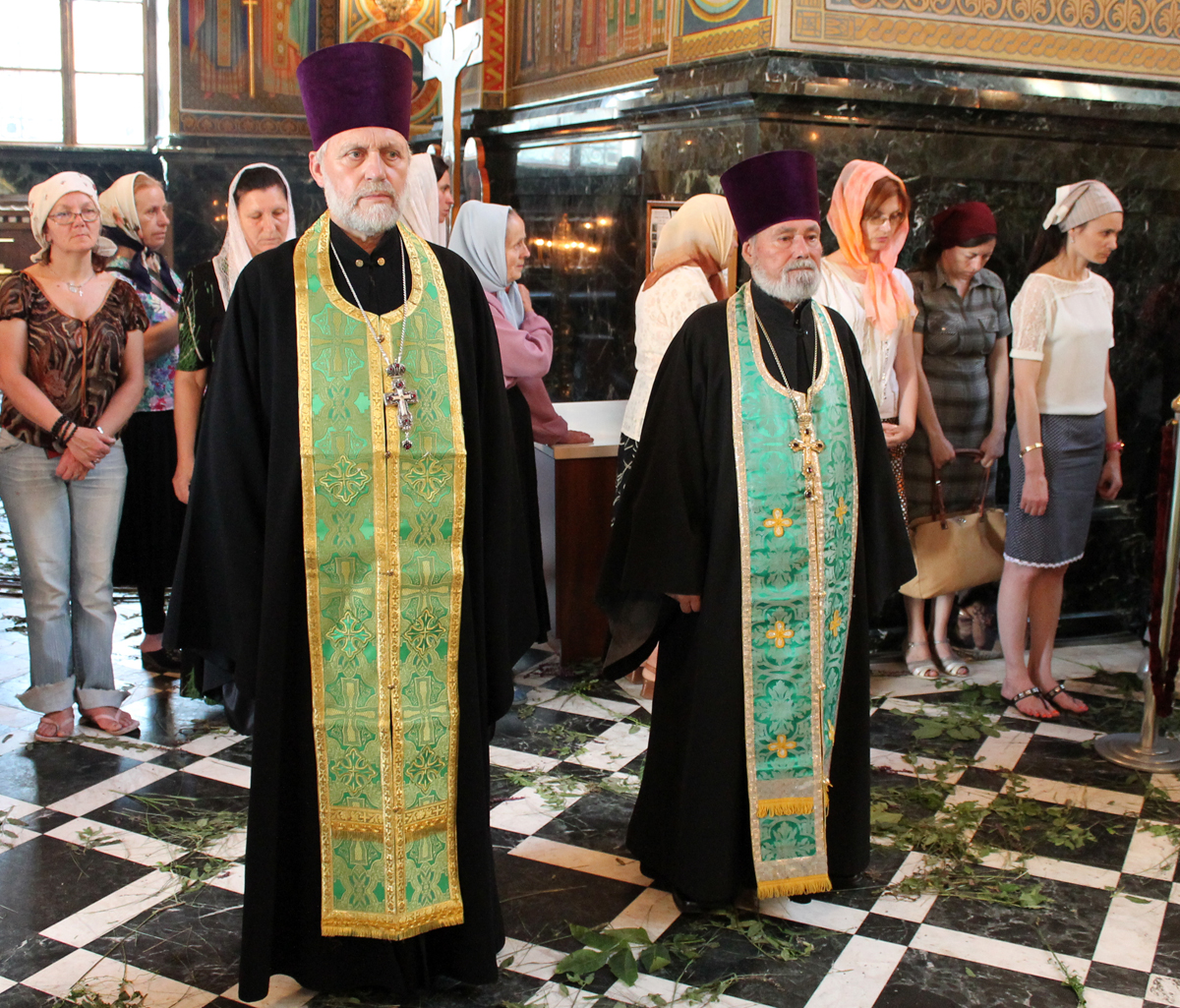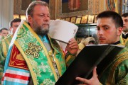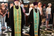 Сослужили Его Высокопреосвященству соборное духовенство во главе с митрофорным протоиереем Вадимом Кейбашем, секретарем Митрополии.