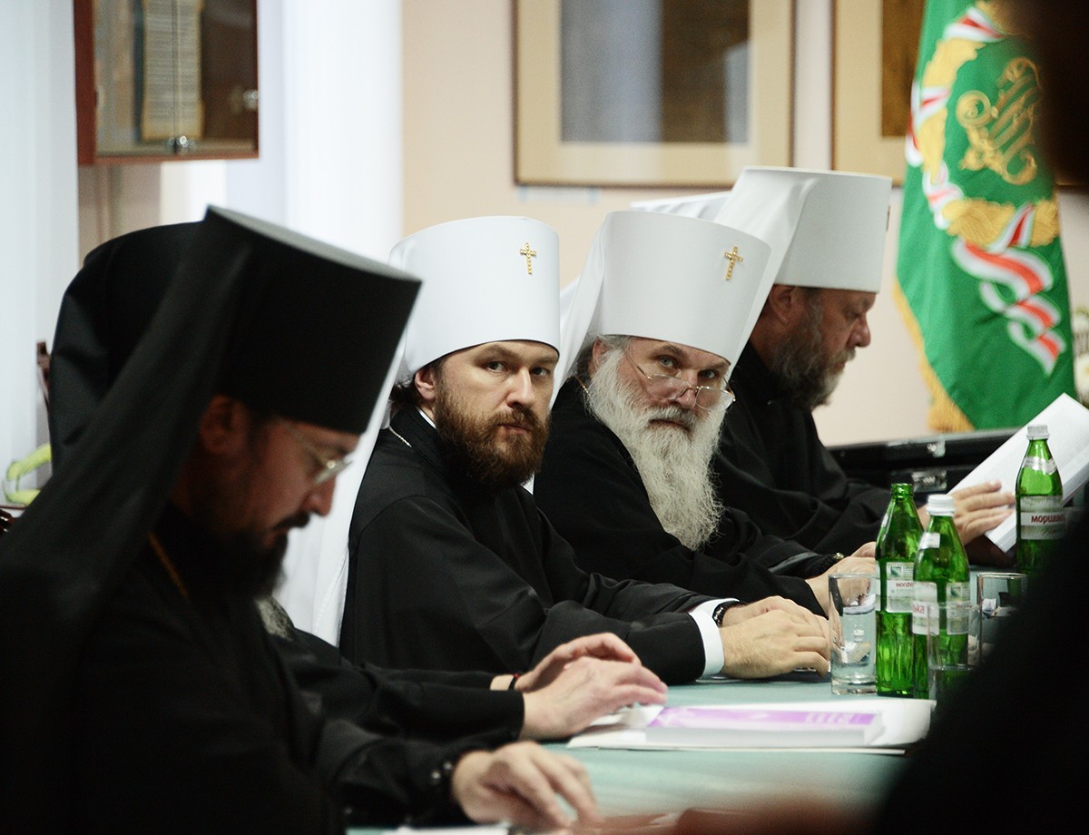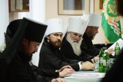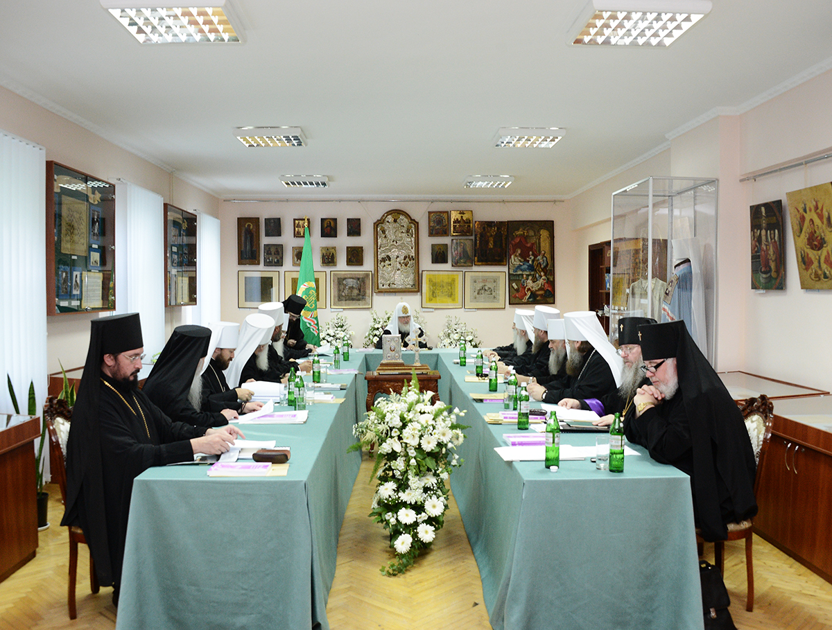 В ходе заседания члены Священного Синода имели суждение о жизни и трудах Русской Православной Церкви в связи с 1025-летием Крещения Руси, а также об изменении именования Синодального отдела по взаимодействию с Вооруженными силами и правоохранительными учреждениями и об утверждении Устава этого ОТдела.