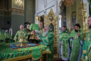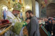 Проповедь перед причастием произнес Высокопреосвященный митрополит Ташкентский и Узбекистанский Викентий, который кратко рассказал о жизненном подвиге прп. старца Паисия Величковского и его трудах по утверждению монашеского делания на молдавской земле.