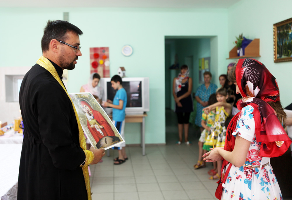 Прот. Николай Чобану, председатель епархиального Отдела по Культурным Связям с Общественностью, передал в дар Центру икону с образом Божией Матери, а присутствующих деток призвал усердно возносить свои молитвы к Небесному Отцу, чтобы Он их оградил от всякого зла и чтоб они могли в полной мере радоваться красотой детства.