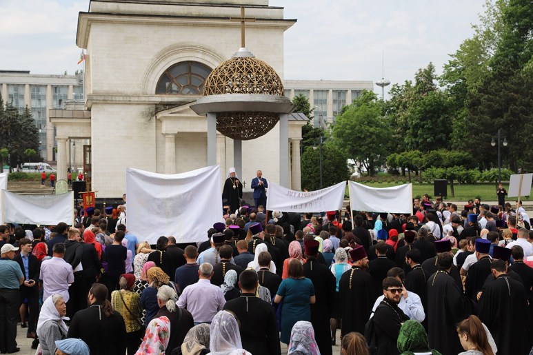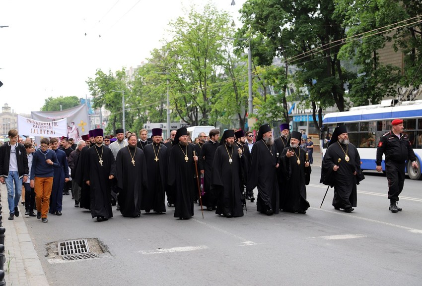 По окончании Божественной литургии, Митрополит Кишиневский и всея Молдовы Владимир совершил молебен на начало всякого благого дела, после чего последовало непосредственно само шествие.