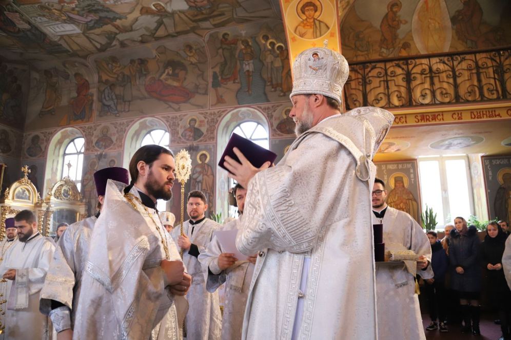 За Литургией Высокопреосвященный Митрополит Владимир совершил две хиротонии: в сан пресвитера был рукоположен клирик Спасо-Преображенского собора диакон Александр Плэмэдялэ, в сан диакона — студент Кишиневской духовной академии Илия Мунтян.