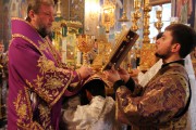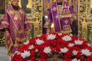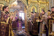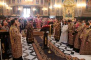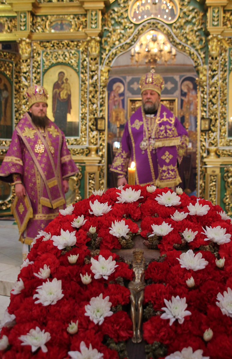 По заамвонной молитве был совершен благодарственный молебен, после которого Высокопреосвященный Митрополит Владимир совершил поклонение Честному и Животворящему Кресту Господню.