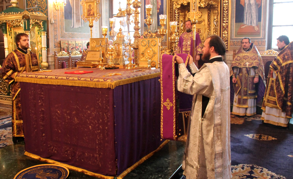 Проповедь перед причастием произнес соборный клирик митр. прот. Андрей Бурлеску.