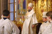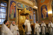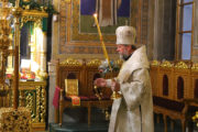 Его Высокопреосвященству сослужили: секретарь Кишиневско-Молдавской митрополии митр. прот. Вадим Кейбаш, соборное духовенство.
