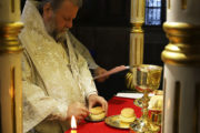 Проповедь перед причастием произнес ключарь кафедрального собора Рождества Христова митр. прот. Вадим Кейбаш.
