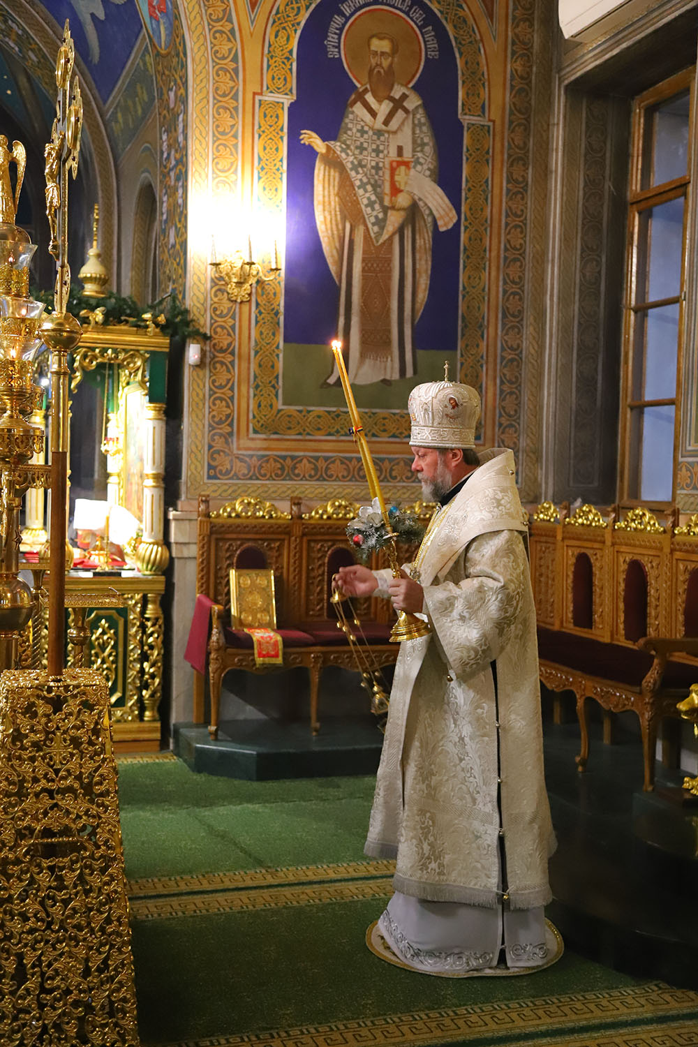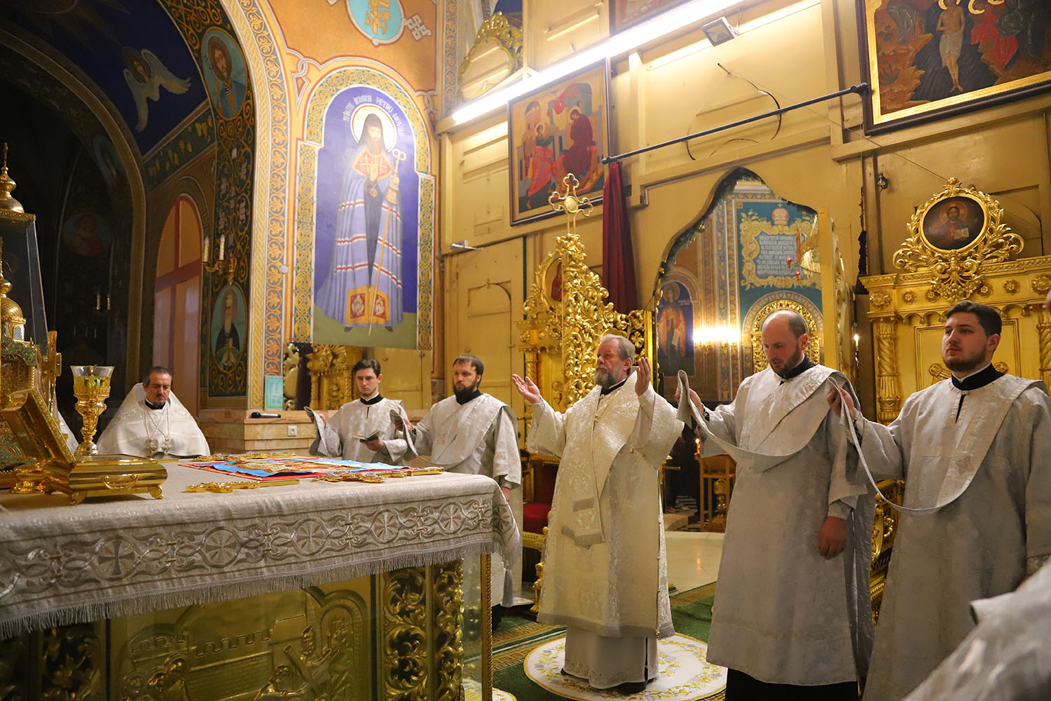 Его Высокопреосвященству сослужили: секретарь Кишиневско-Молдавской митрополии митр. прот. Вадим Кейбаш, соборное духовенство.
